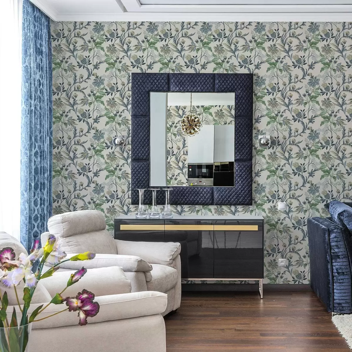 Tapet Flori și frunze populare albastru-verzui pe fond crem Nr. a00863