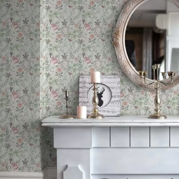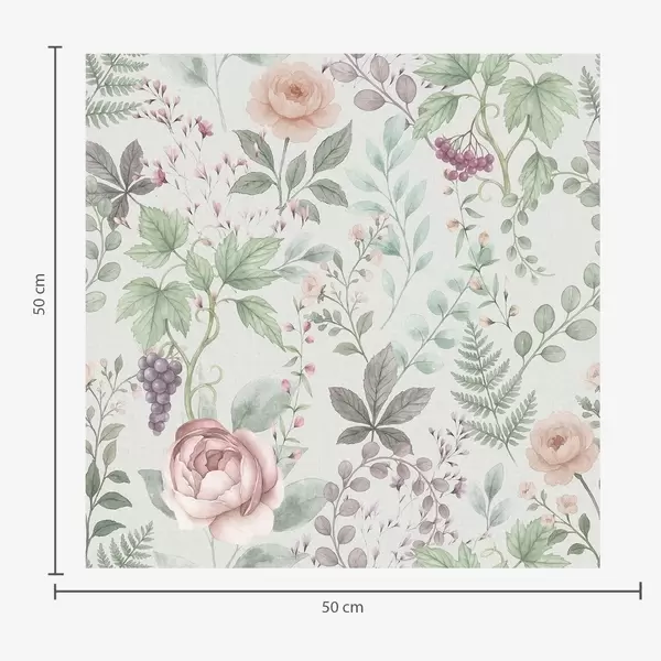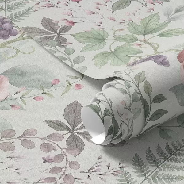 Tapet Grădină pastelată cu trandafiri, ferigi și struguri Nr. a00867
