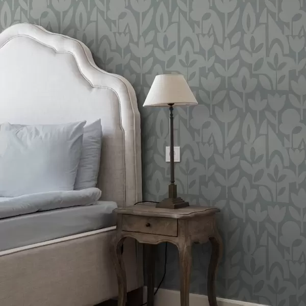 Tapet Siluete florale geometrice în albastru ardezie Nr. a00875