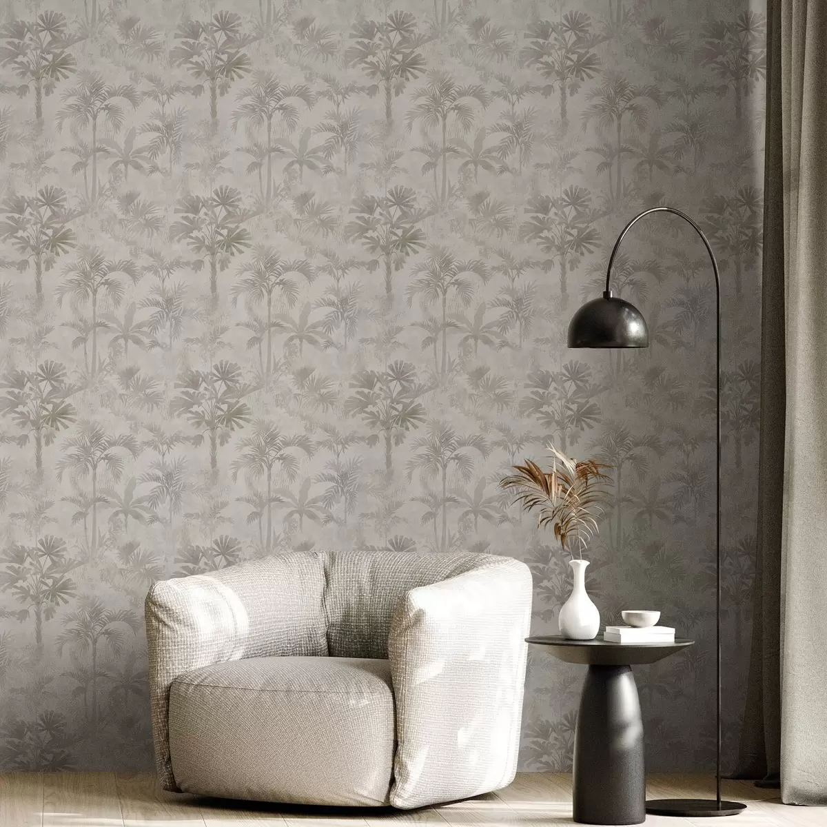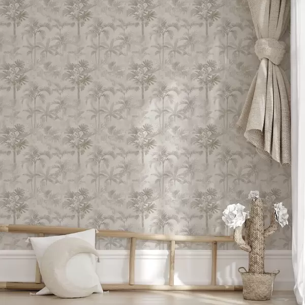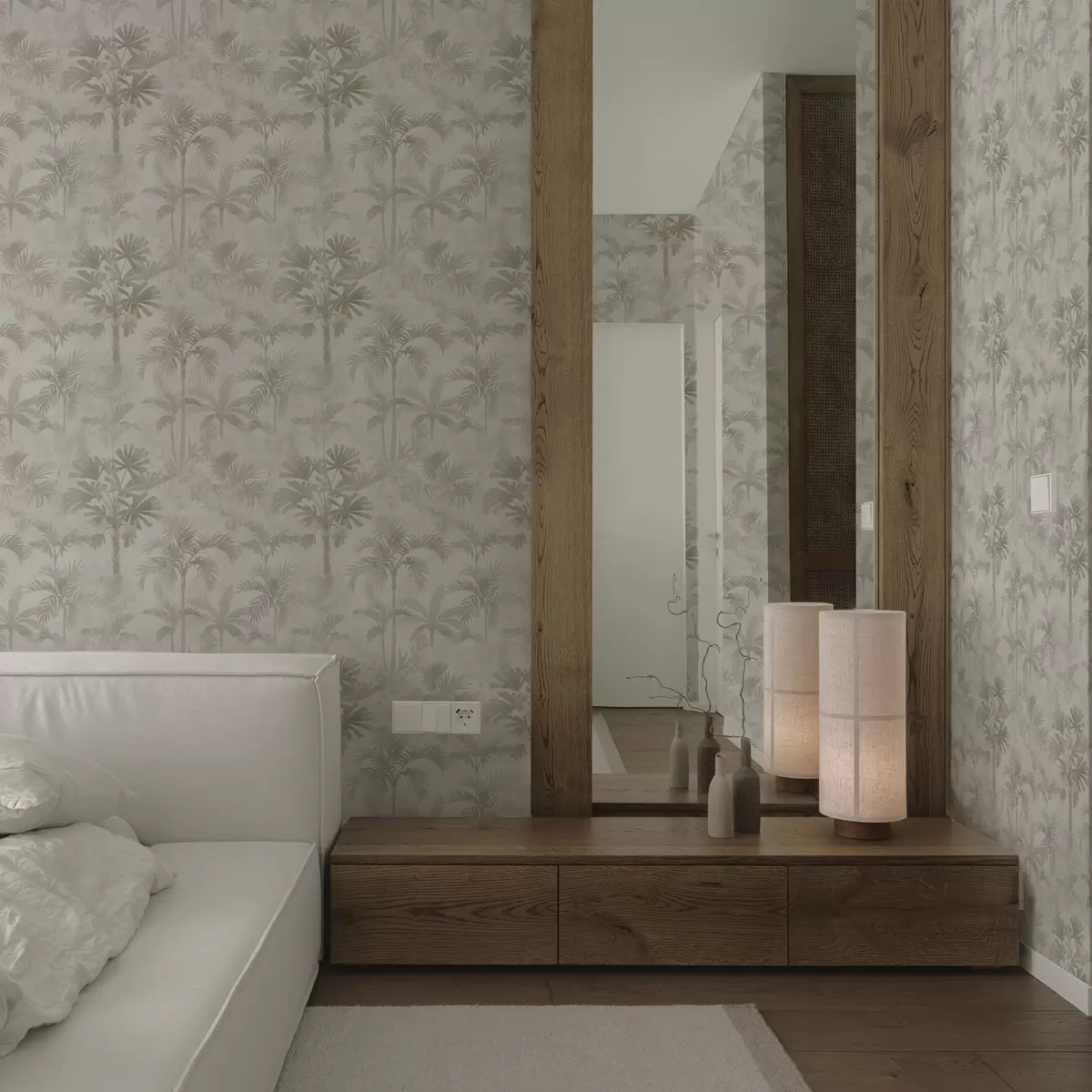 Tapet Palmierii învăluiți în ceață, în nuanțe calde de bej Nr. a00881