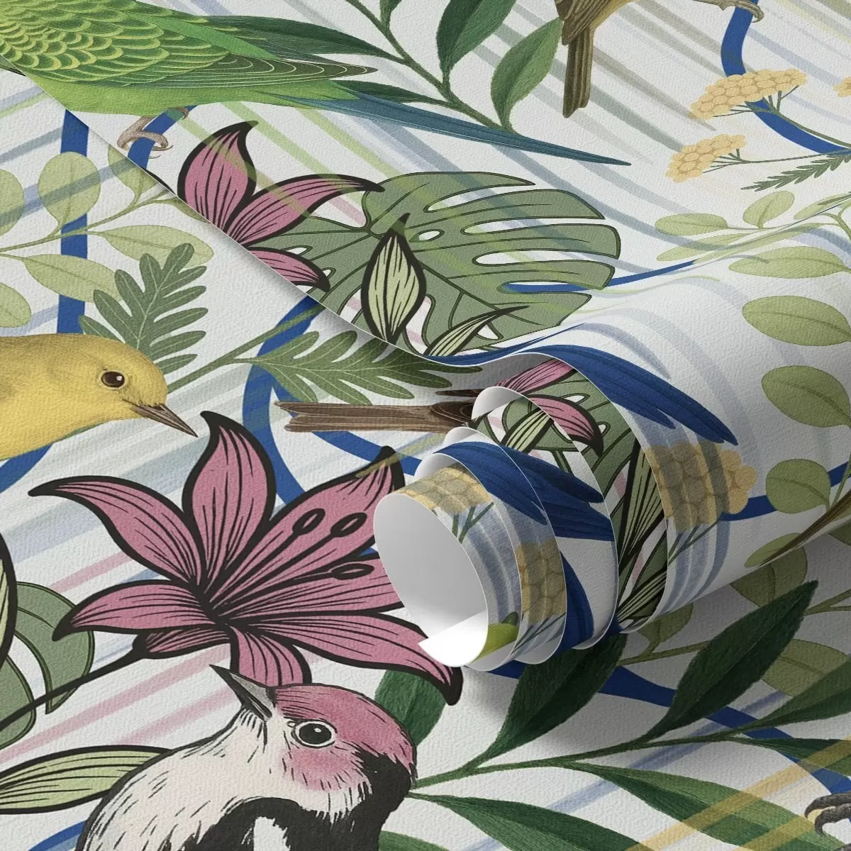 Tapet Păsări exotice strălucitoare printre vegetația tropicală Nr. a00887