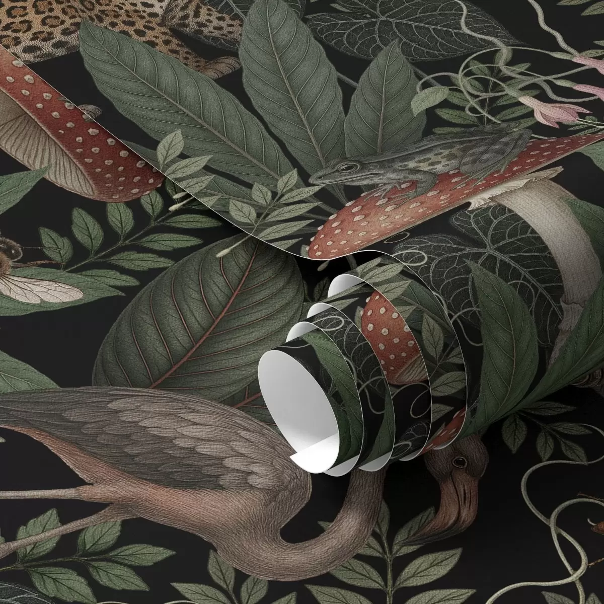 Tapet Locuitori ai junglei nocturne, în vegetație luxuriantă și detaliată Nr. a00896