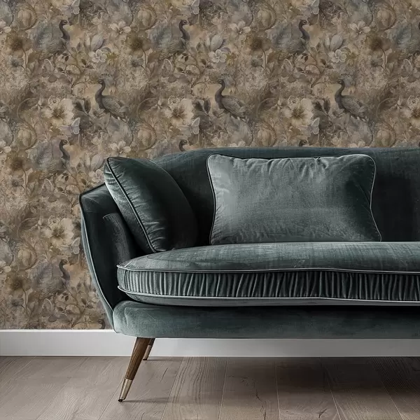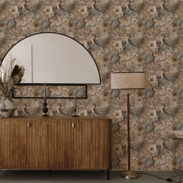 Tapet Colaj floral învechit cu păuni și fluturi Nr. a00897