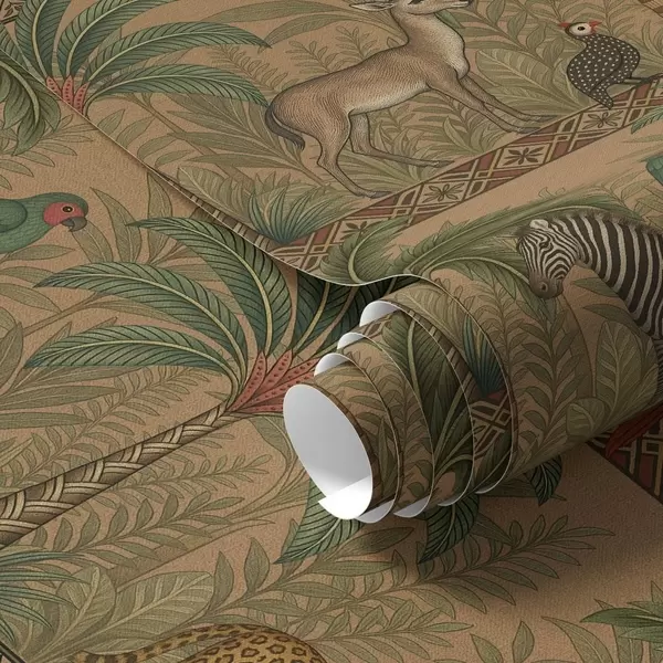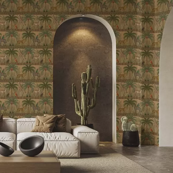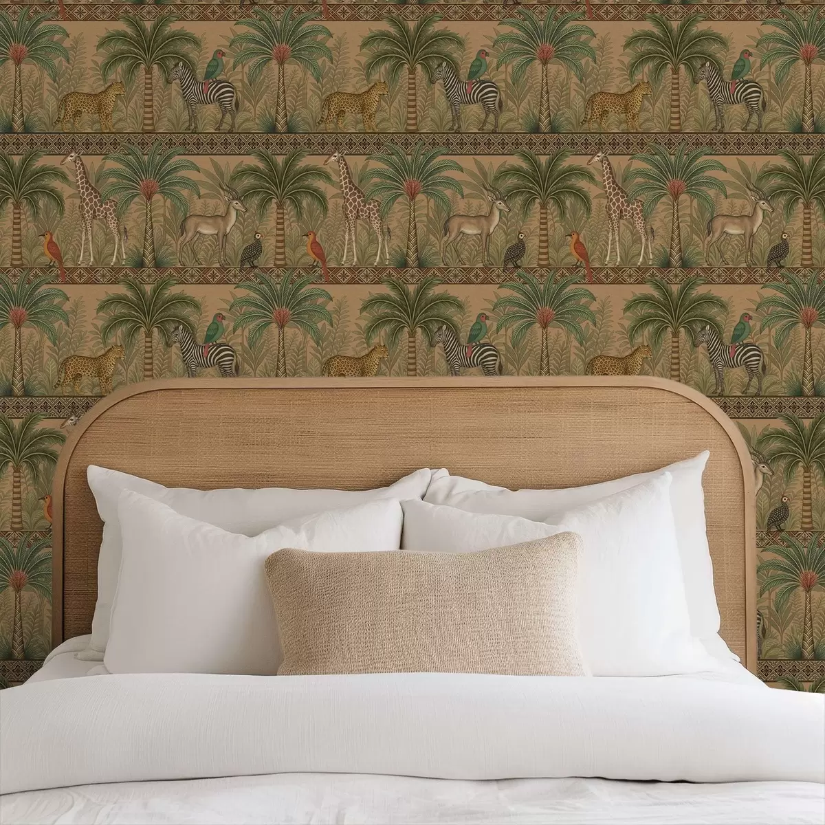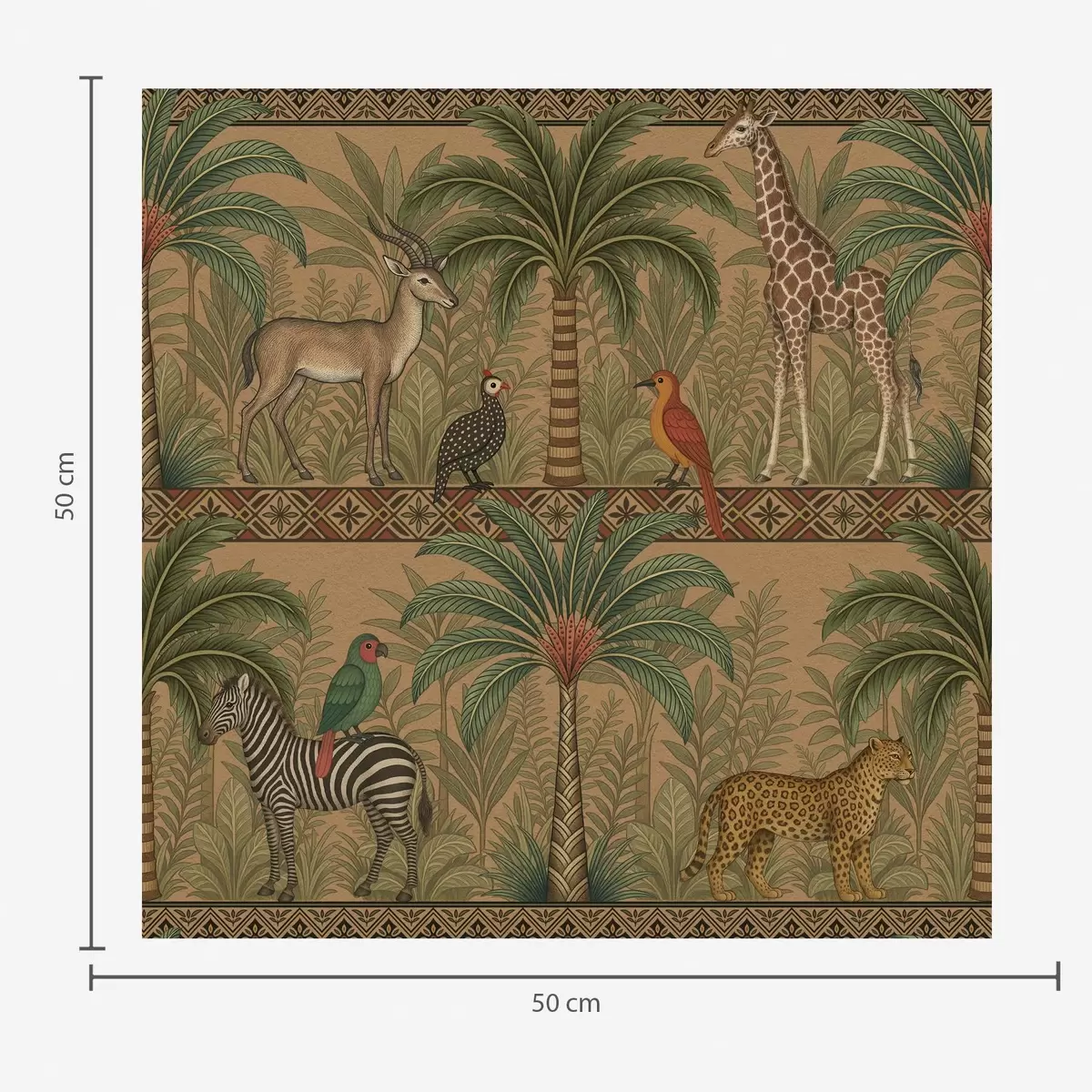 Tapet Animale decorative din savană între palmieri și borduri Nr. a00898