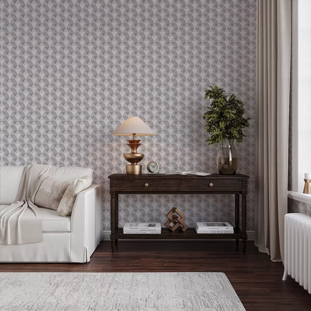 Tapet Model geometric triunghiular în tonuri de gri și pudră Nr. a00920