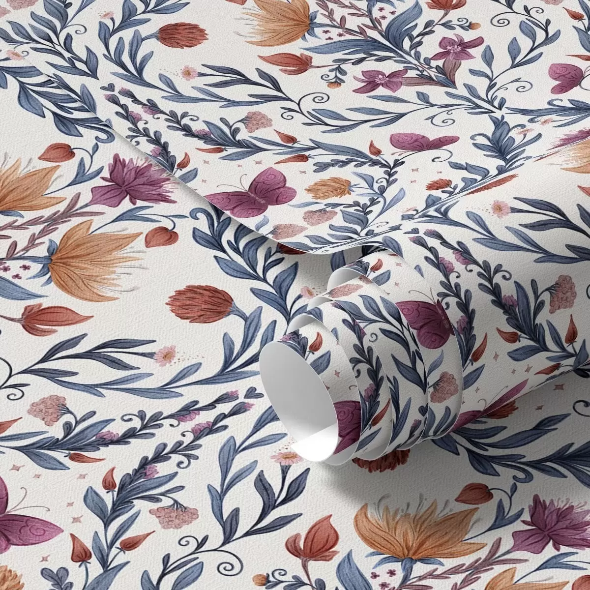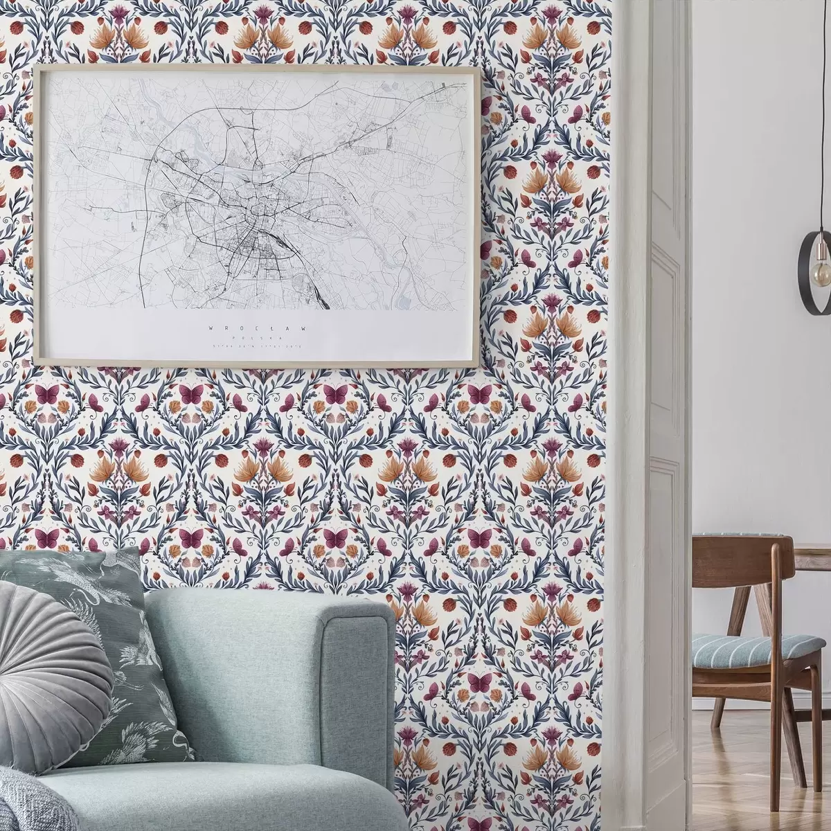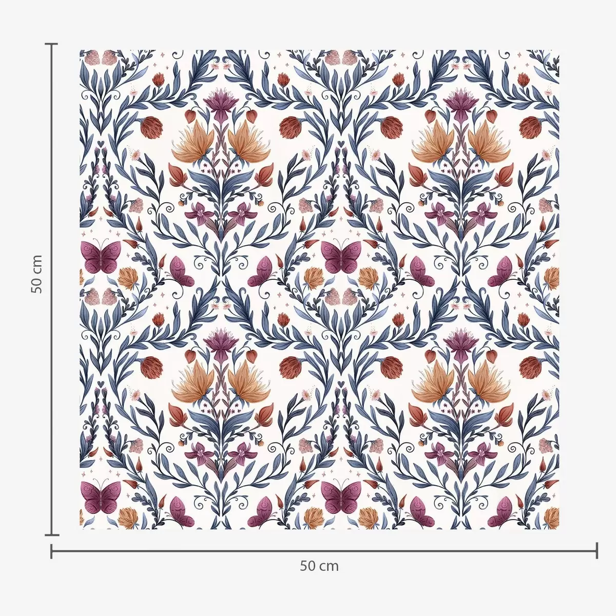 Tapet Damasc floral cu fluturi pe fond crem cald Nr. a00926v2
