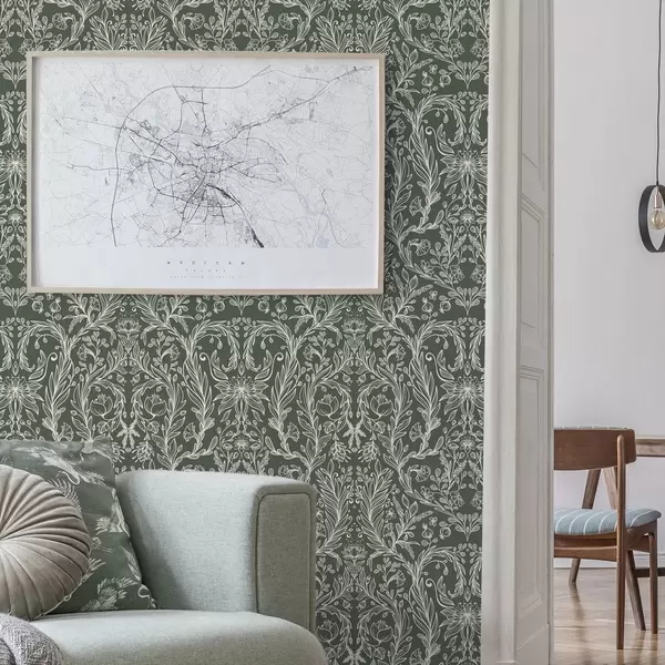 Tapet Model floral liniar pe fond verde închis Nr. a00929