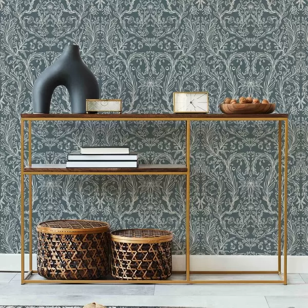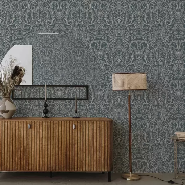 Tapet Ornament floral liniar pe fond albastru-cenușiu Nr. a00929v1