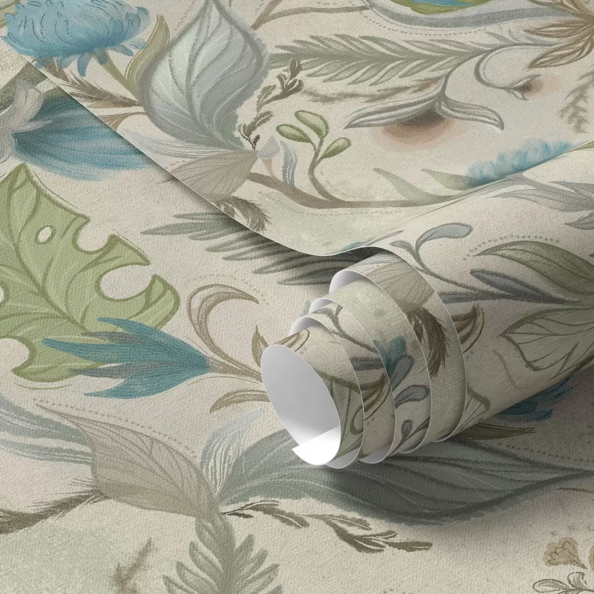 Tapet Muguri și frunze albastre pe un fundal bej deschis Nr. a00930