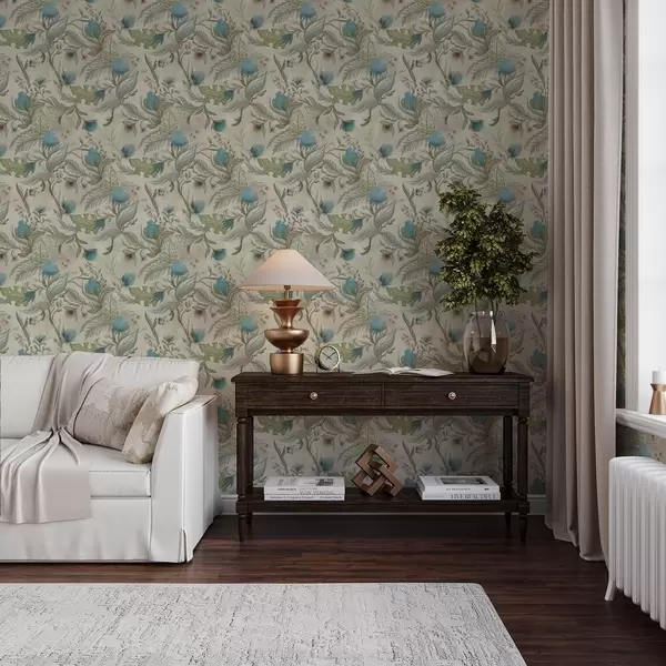 Tapet Muguri și frunze albastre pe un fundal bej deschis Nr. a00930