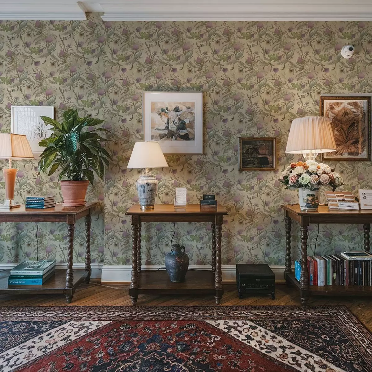 Tapet Muguri de liliac și verdeață delicată pe fond crem Nr. a00930v2