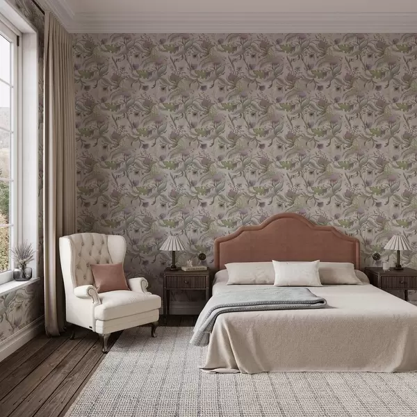 Tapet Flori sălbatice de liliac și frunze pe un fundal pudrat Nr. a00930v3