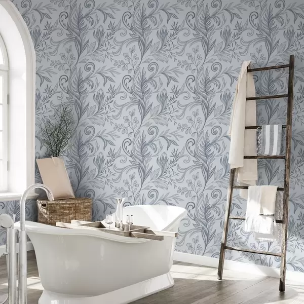 Tapet Frunze ușor ondulate, de culoare albastru gheață, cu textură fină Nr. a00935v1