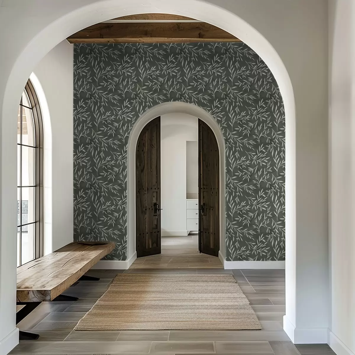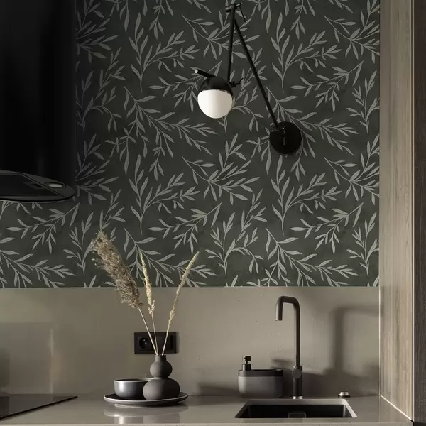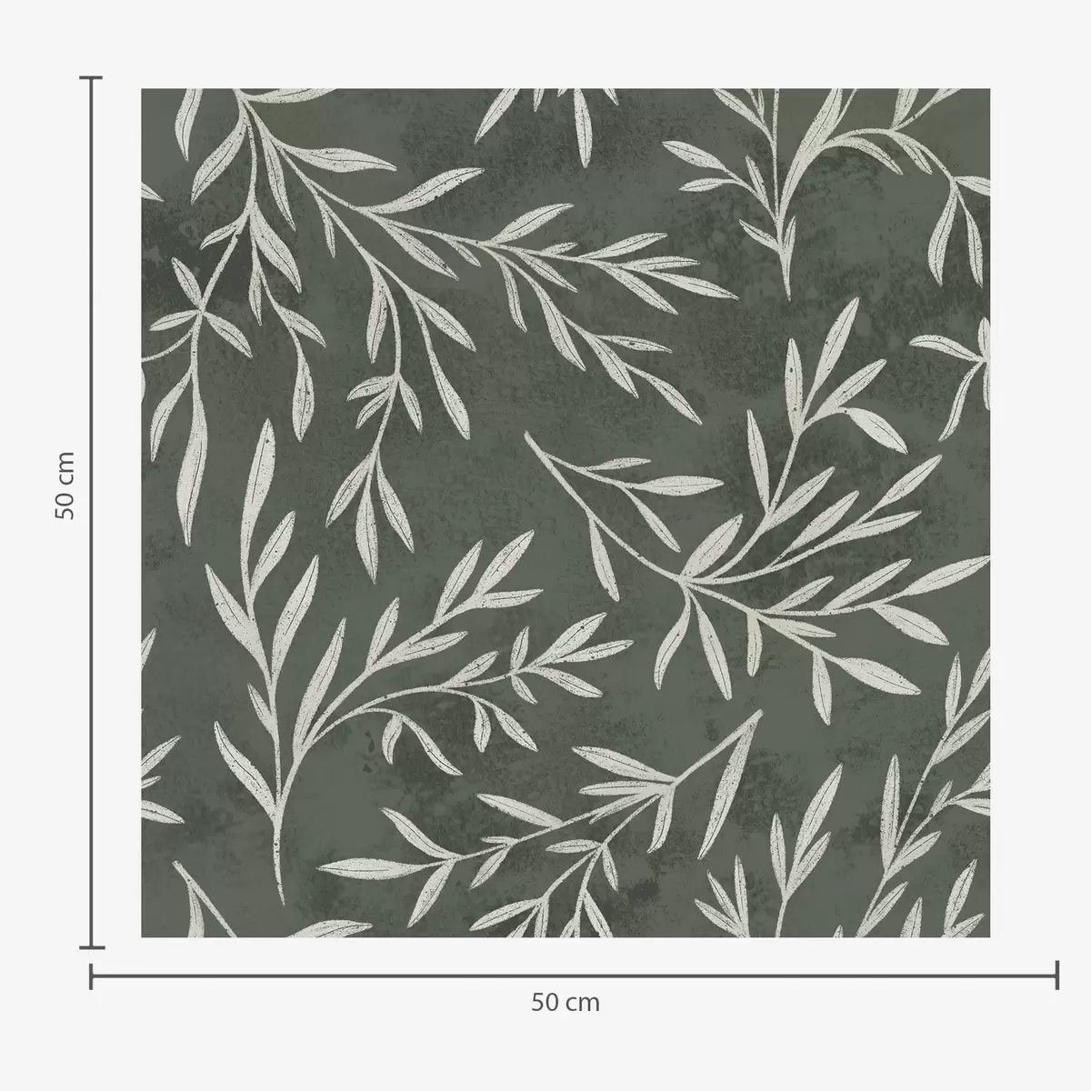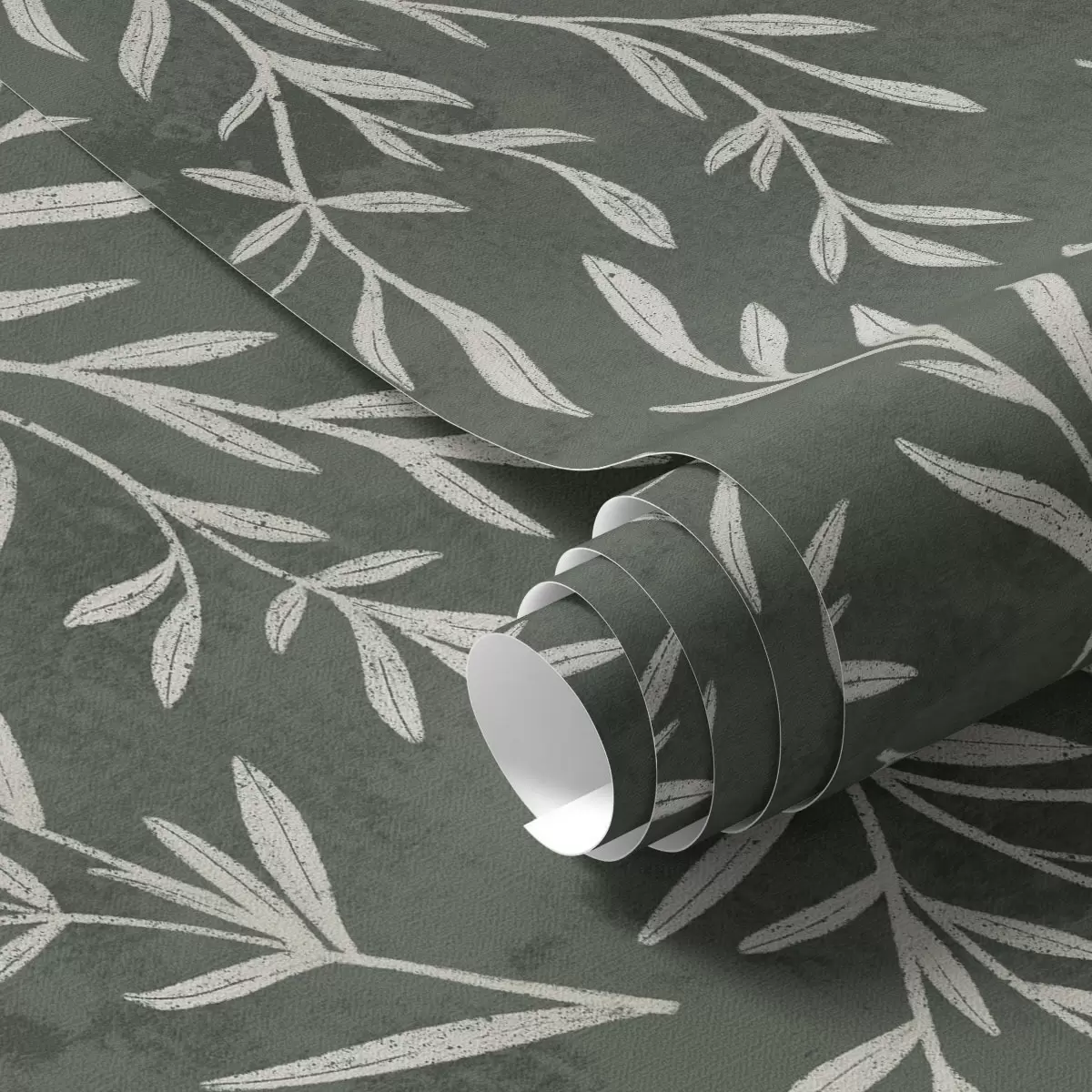 Tapet Ramuri albe schițate pe un fundal verde salvie intens Nr. a00936v2