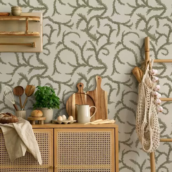 Tapet Bucle moi de conifere verzi pe un fundal deschis Nr. a00938