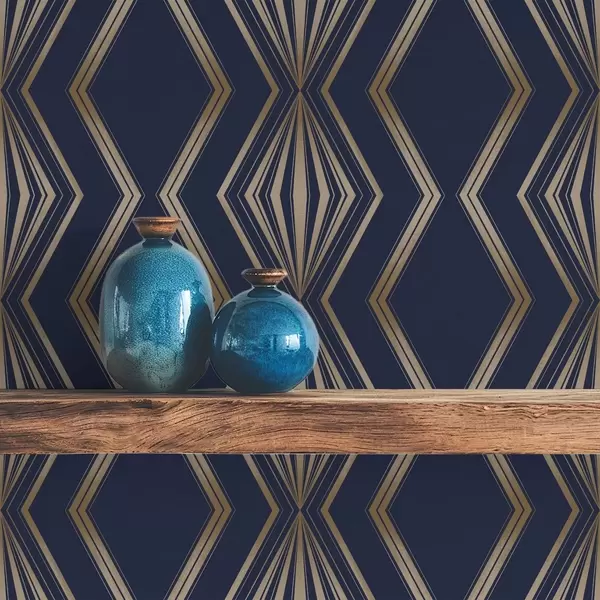 Tapet Fundal albastru închis cu romburi geometrice și zigzaguri Nr. a00974v2