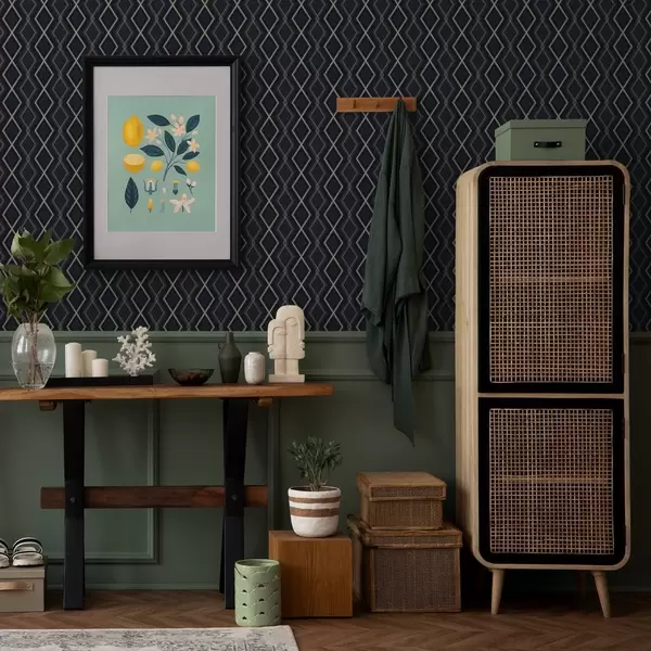 Tapet Rețea de romburi albastru închis cu linii subțiri deschise la culoare Nr. a00975