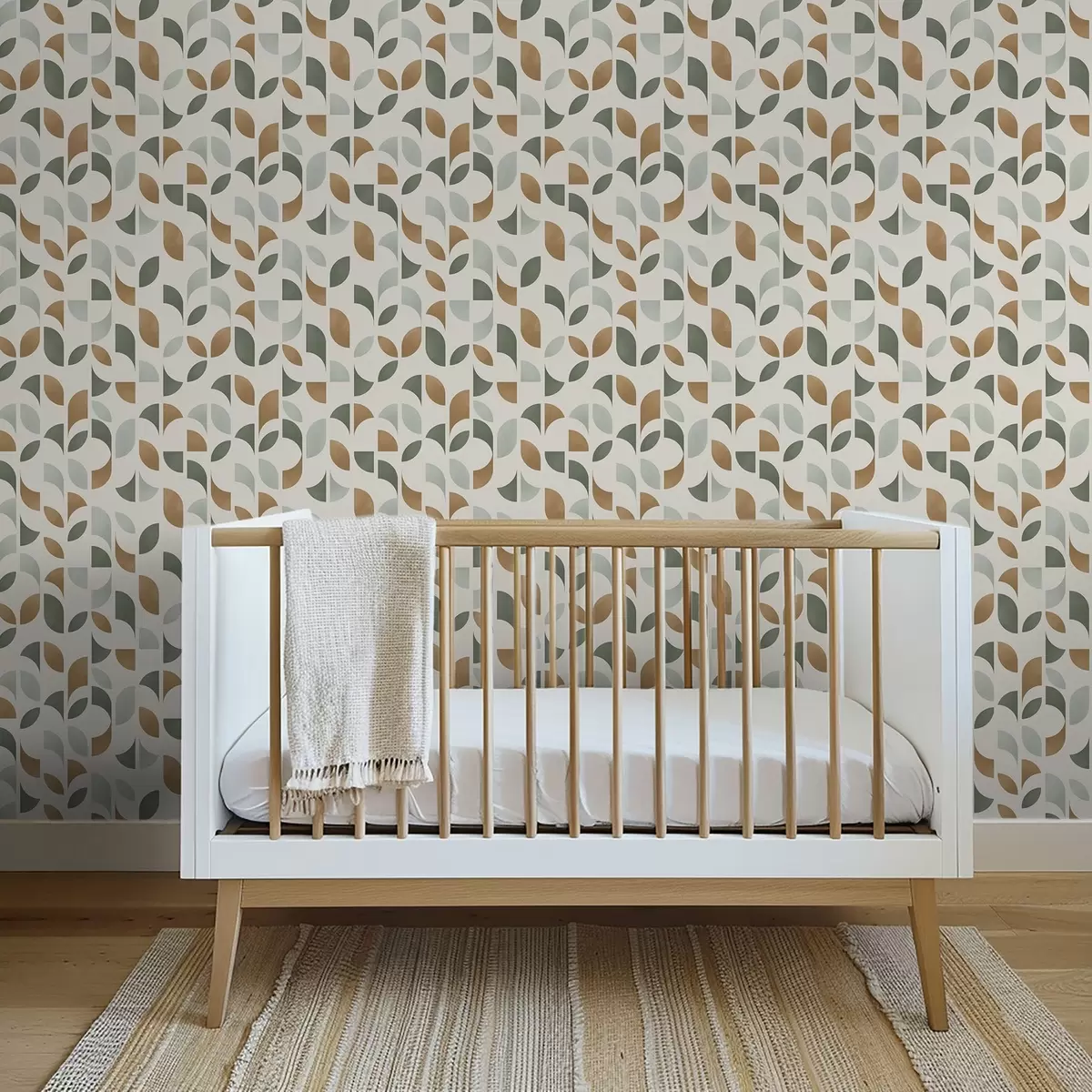 Tapet Coloane verticale din semicercuri și frunze, verde-teracotă Nr. a00986