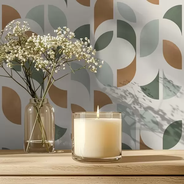 Wallpaper Coloane verticale din semicercuri și frunze, verde-teracotă a00986