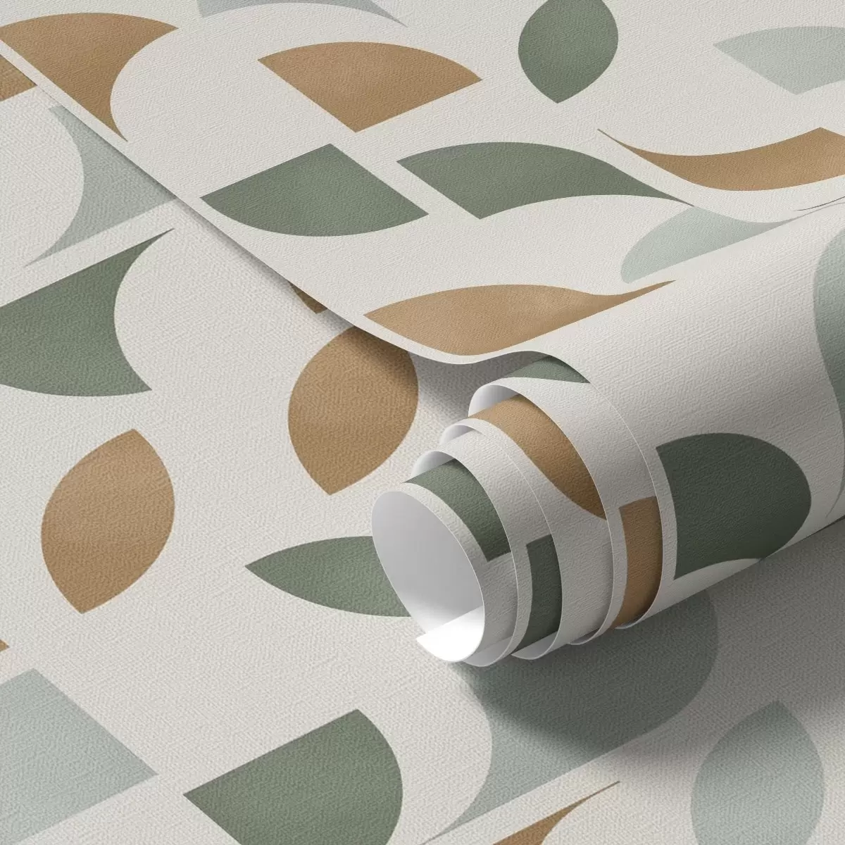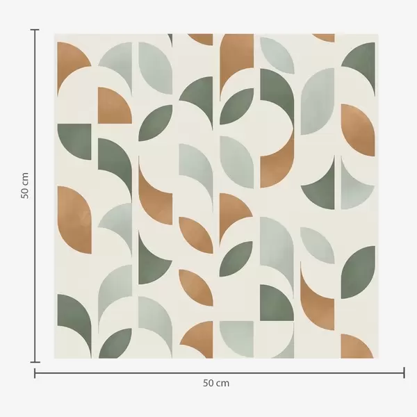 Tapet Coloane verticale din semicercuri și frunze, verde-teracotă Nr. a00986