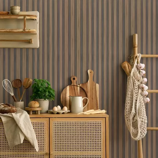 Tapet Lamele verticale din lemn cu inserții de culoare gri închis Nr. a00991