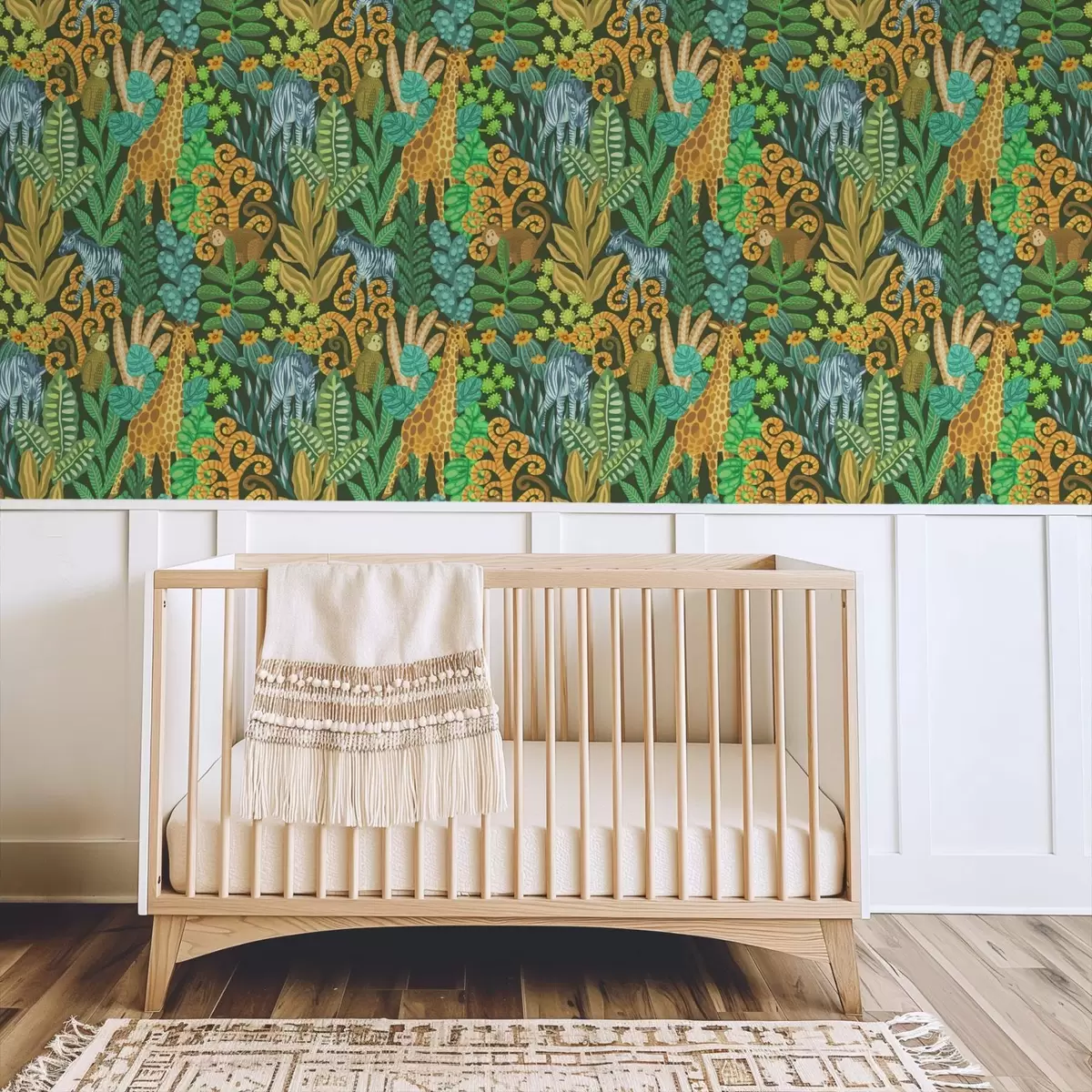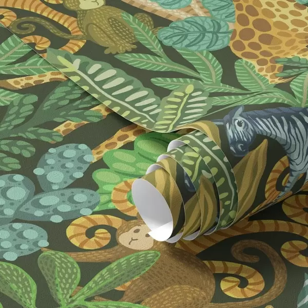 Tapet Junglă densă cu animale pe un fundal verde închis Nr. a01000v2
