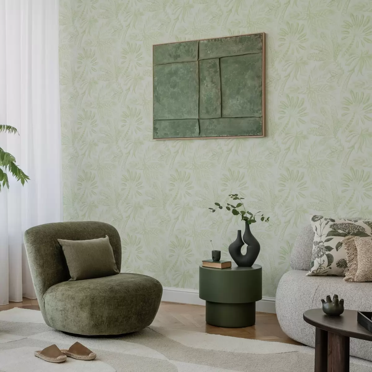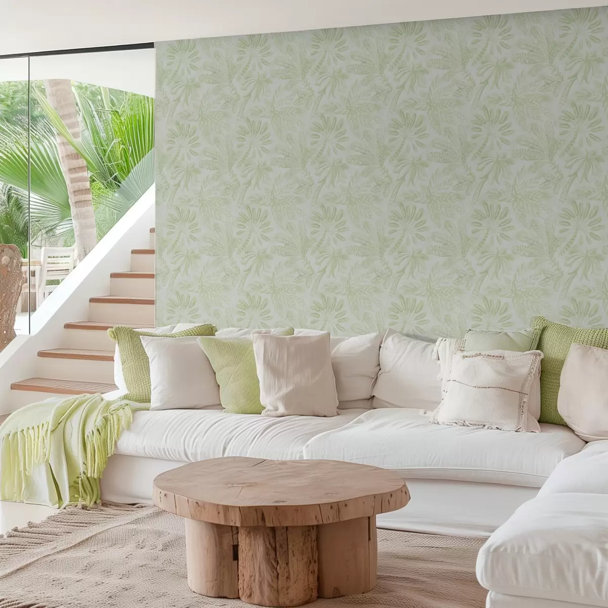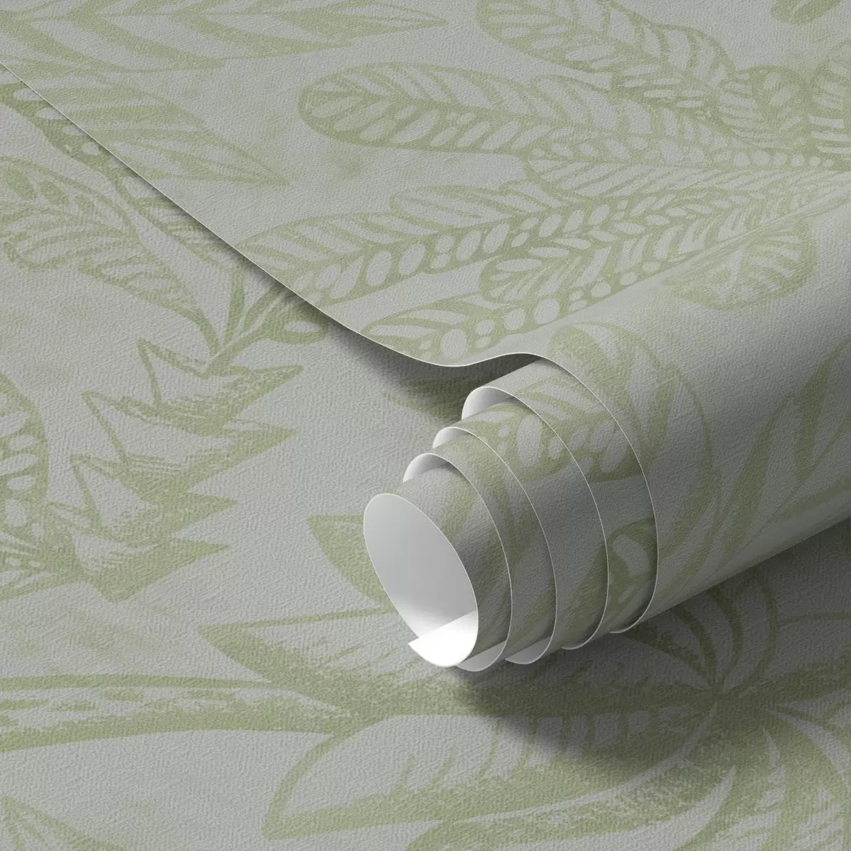Tapet Frunze tropicale schițate în nuanțe proaspete de verde deschis Nr. a01001v1
