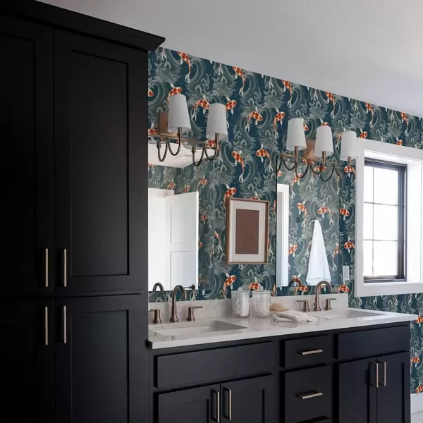 Tapet Pești koi înotând printre valurile dramatice ale oceanului Nr. a01019