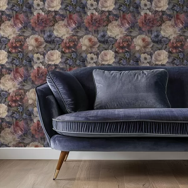 Tapet Buchet pictural de flori mari pe fundal indigo intens Nr. a01021