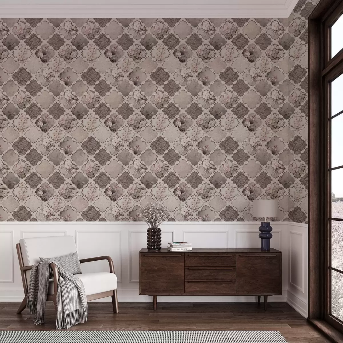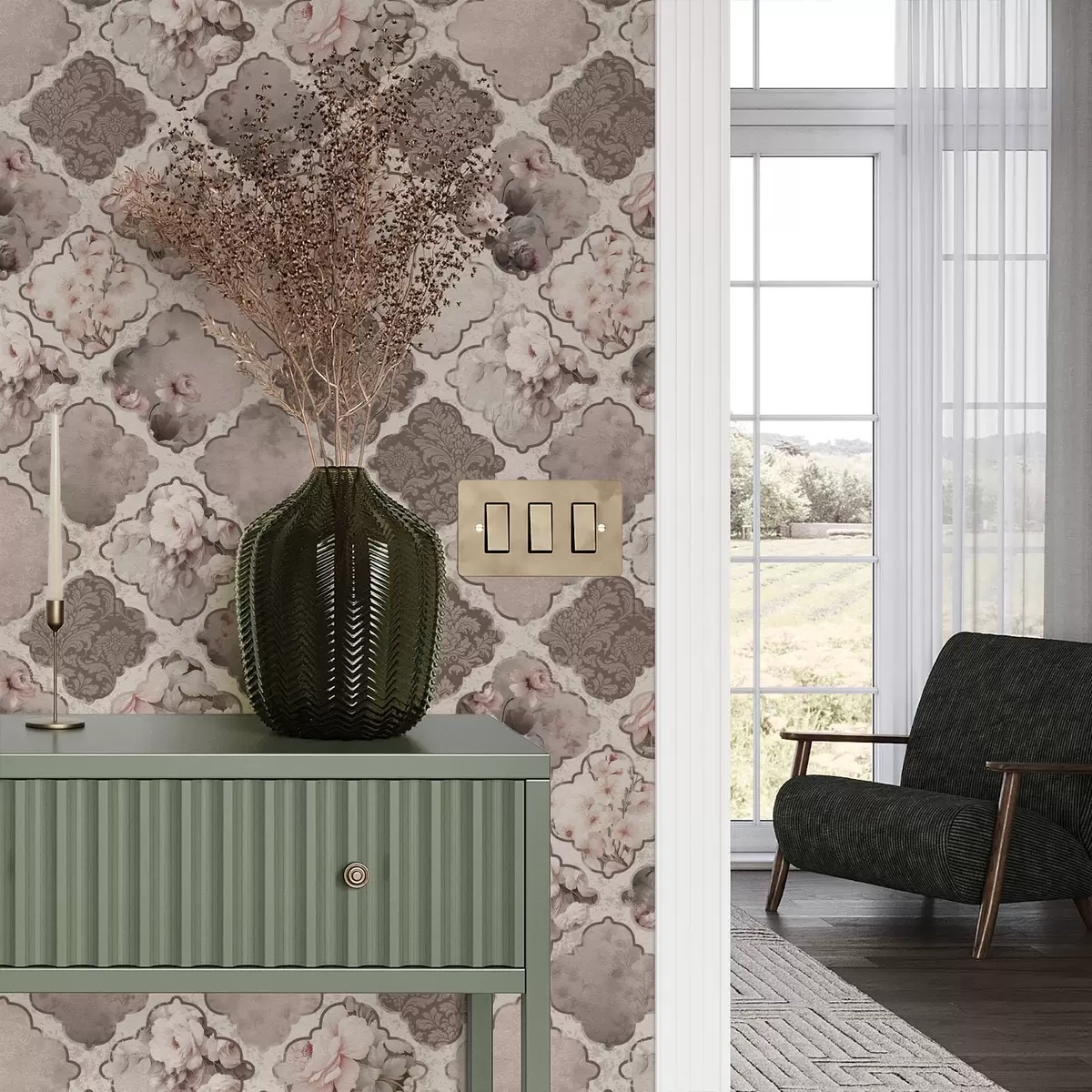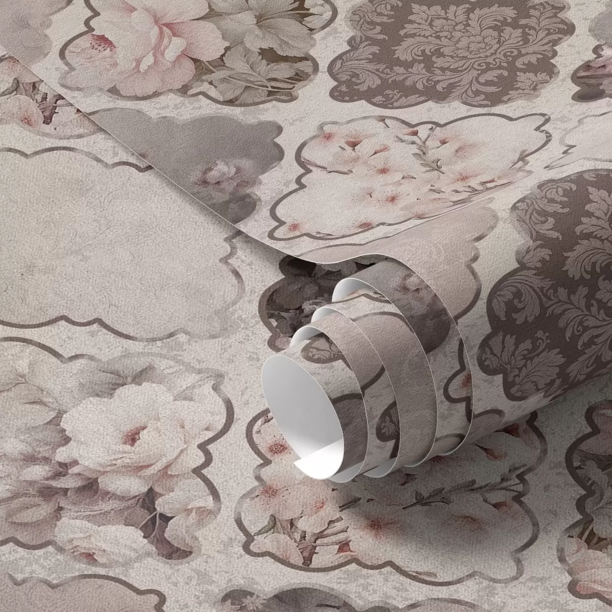 Tapet Patchwork romantic de medalioane florale în tonuri prăfuite Nr. a01027