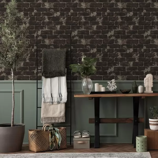 Tapet Zid vechi din cărămidă întunecat, cu porțiuni uzate Nr. a01030