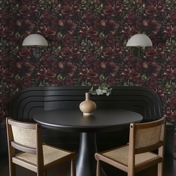 Tapet Flori bogate de culoare burgund pe un fundal întunecat Nr. a01032
