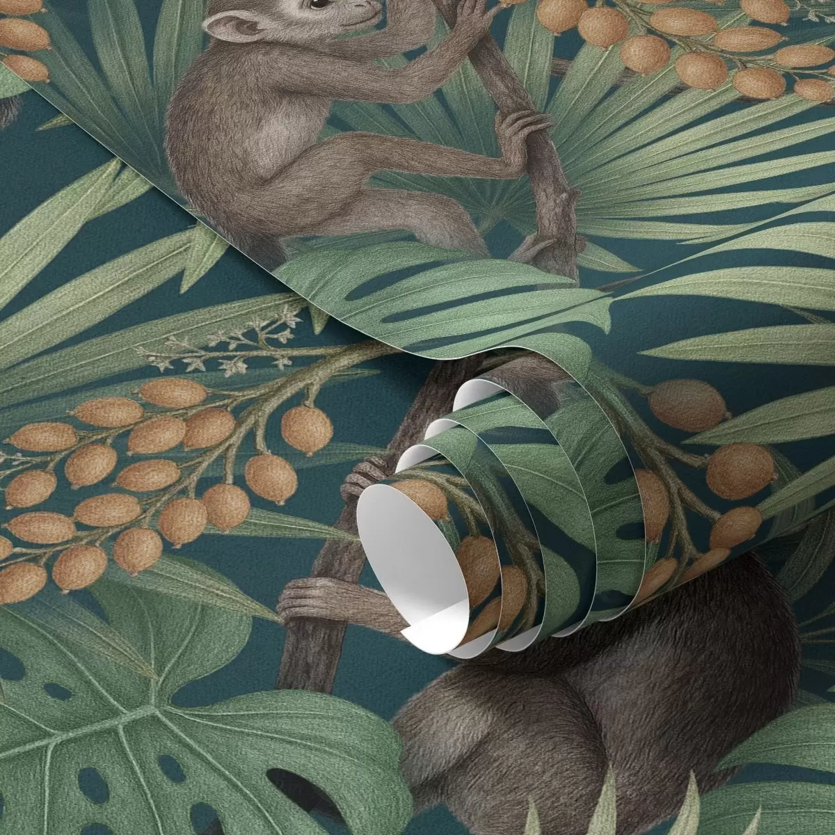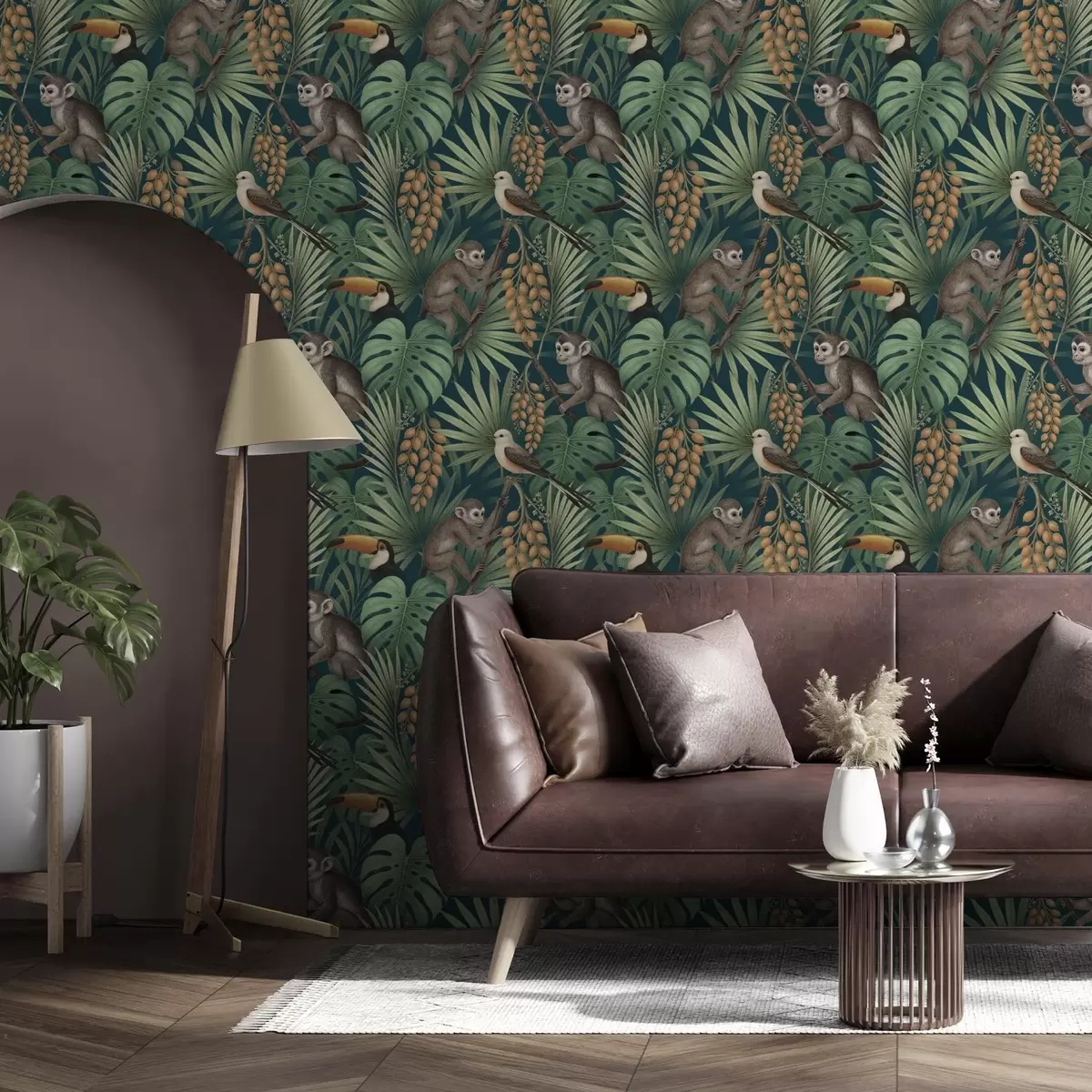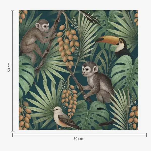 Tapet Maimuțe și păsări tropicale în vegetația densă a junglei Nr. a01037