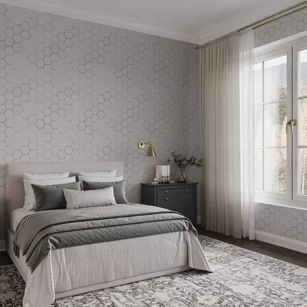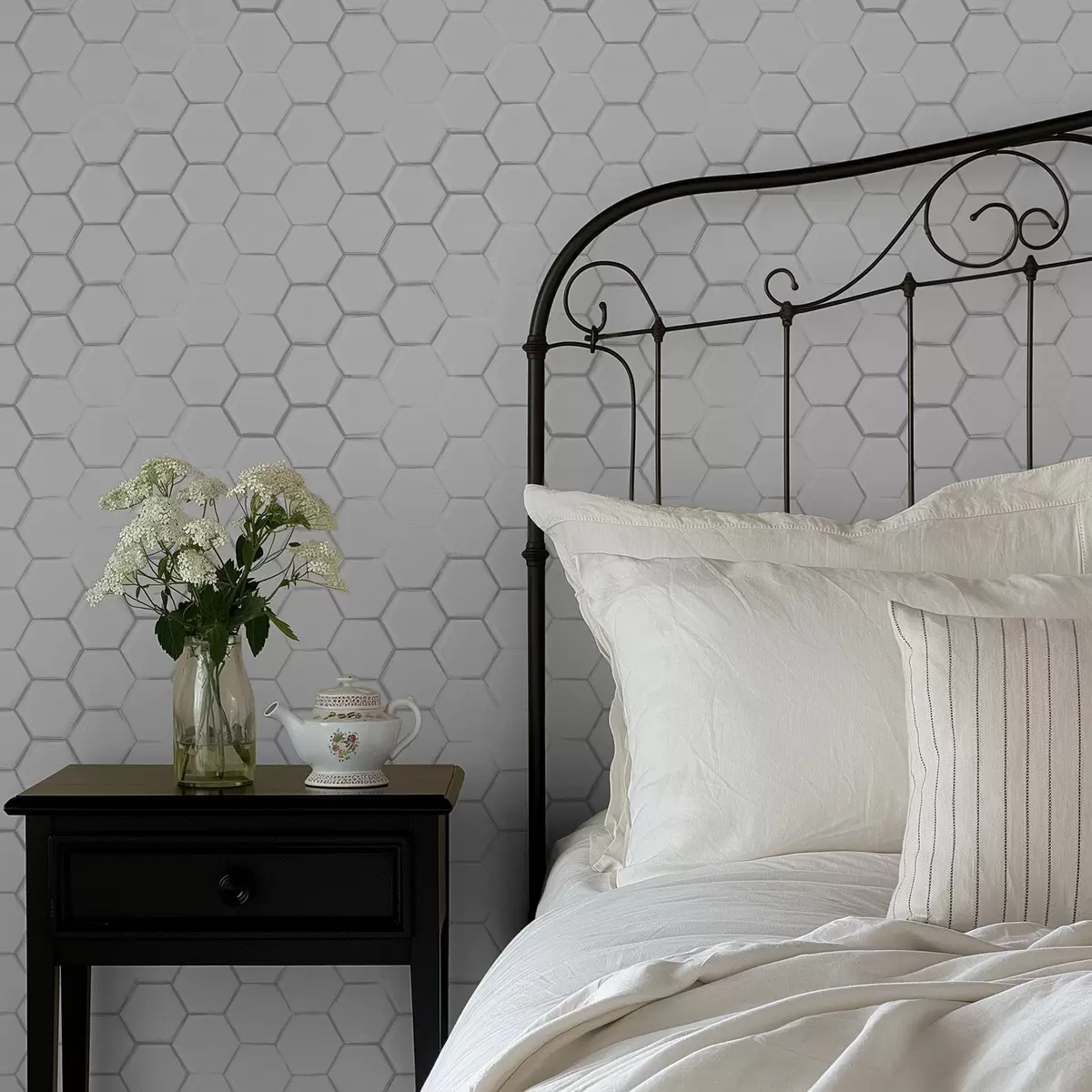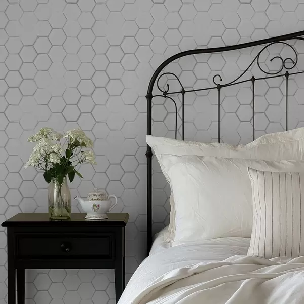 Wallpaper Hexagoane tridimensionale albe pe un fundal neted a01059