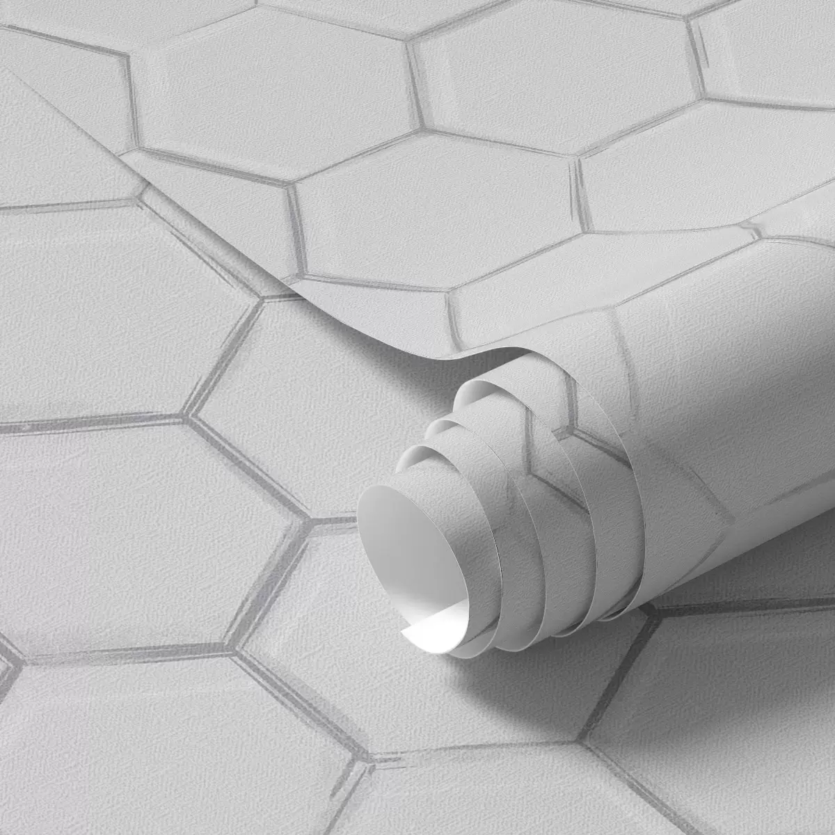 Tapet Hexagoane tridimensionale albe pe un fundal neted Nr. a01059