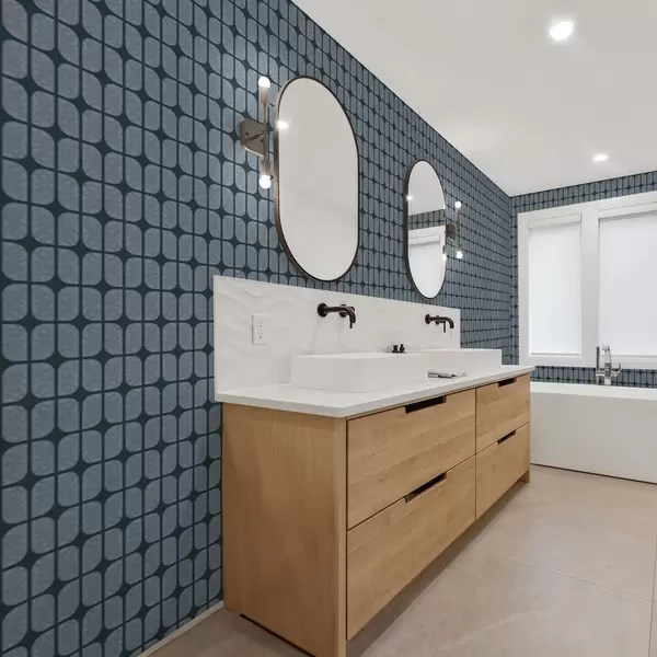 Tapet Fundal albastru închis cu mozaic gri din plăci rotunjite Nr. a01068v1