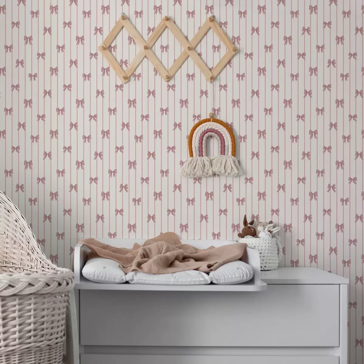 Tapet Fundioare mici roz pe dungi verticale Nr. a01076
