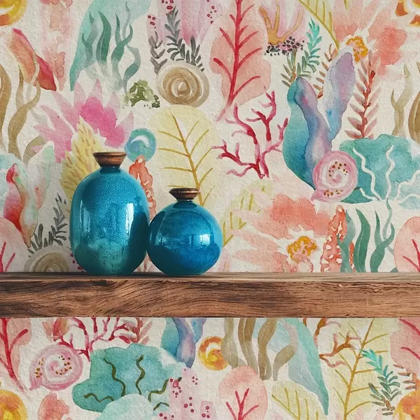Tapet Grădină subacvatică în acuarelă cu corali și alge marine Nr. a01083