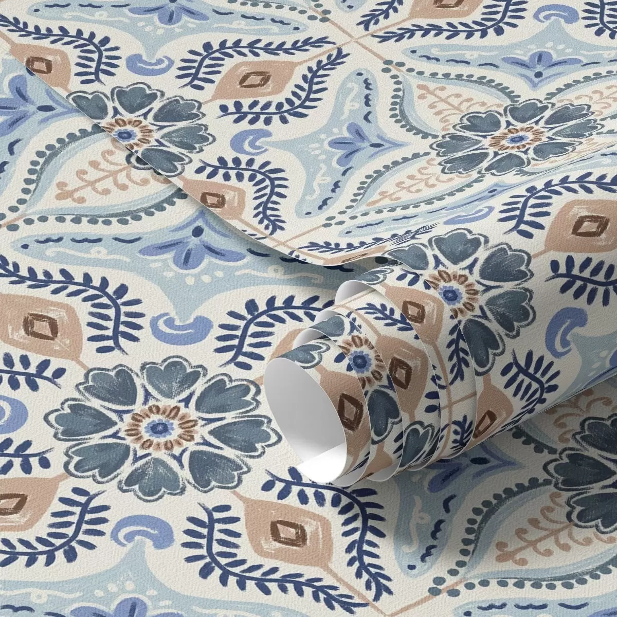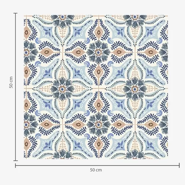 Tapet Ornament în stil faianță albastru-bej pictat în acuarelă Nr. a01085