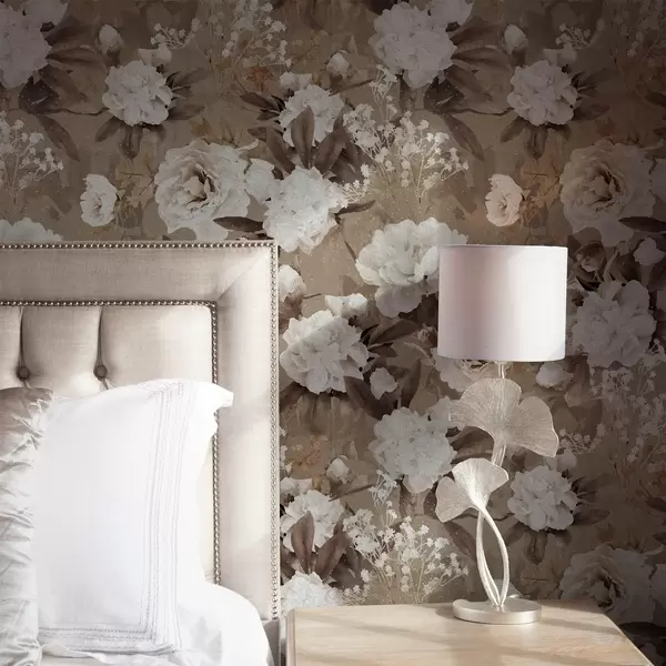 Tapet Bujori bej calzi pe un fundal texturat Nr. a01087