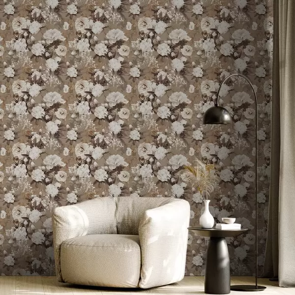 Tapet Bujori bej calzi pe un fundal texturat Nr. a01087