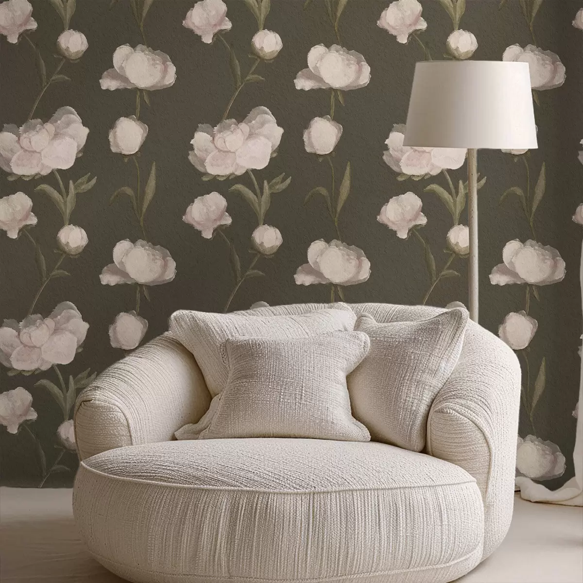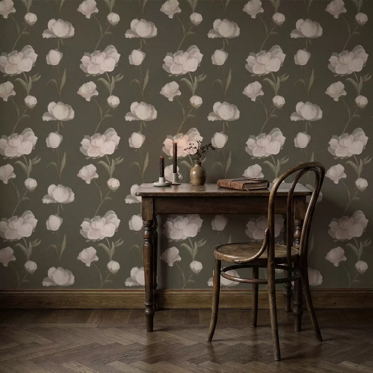 Tapet Bujori roz pal pe fundal închis Nr. a01114v1