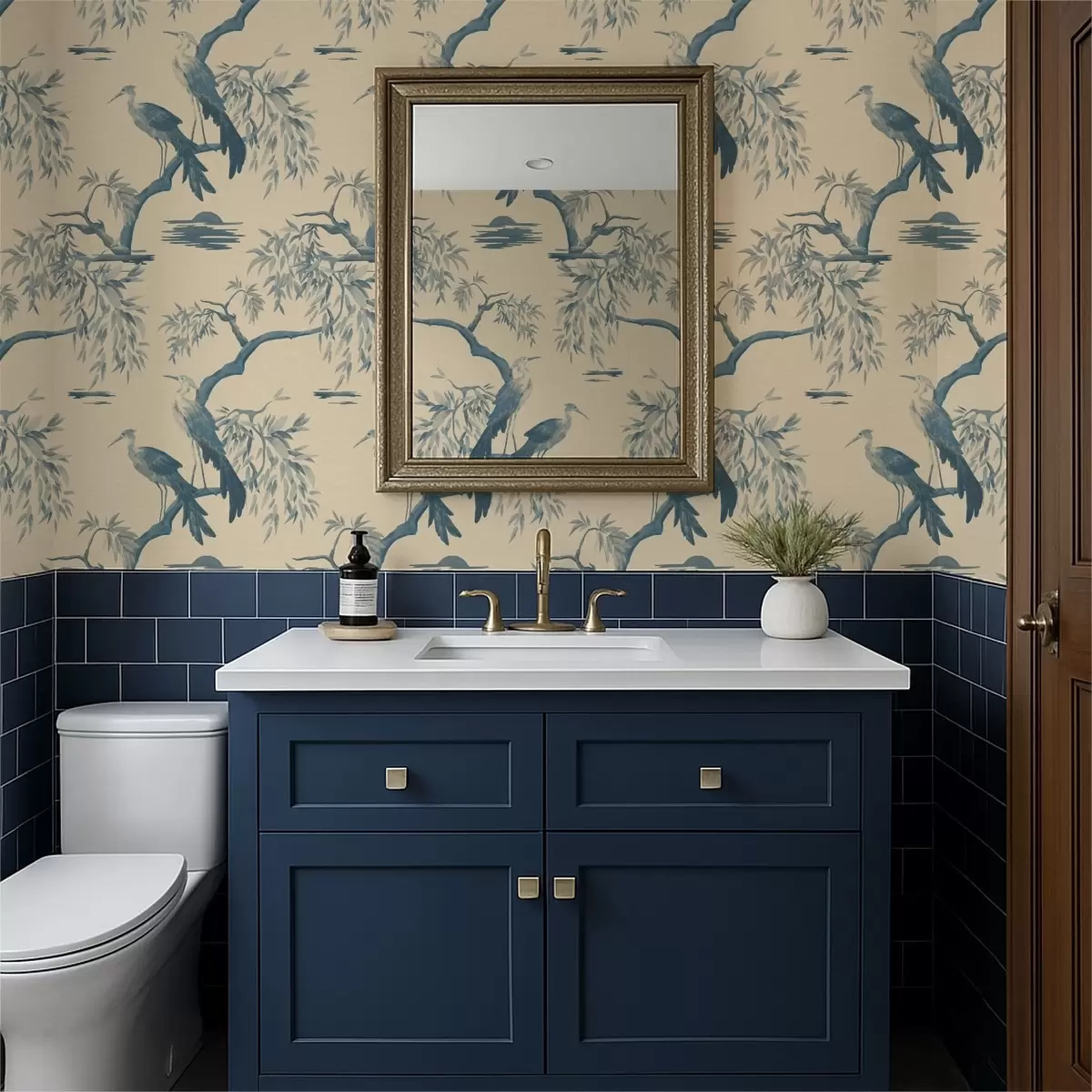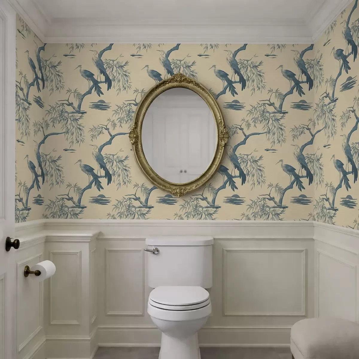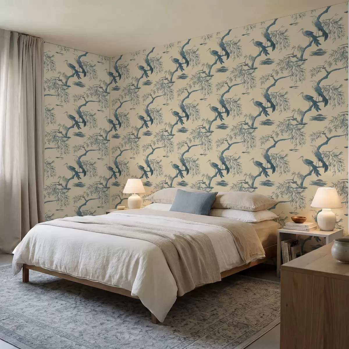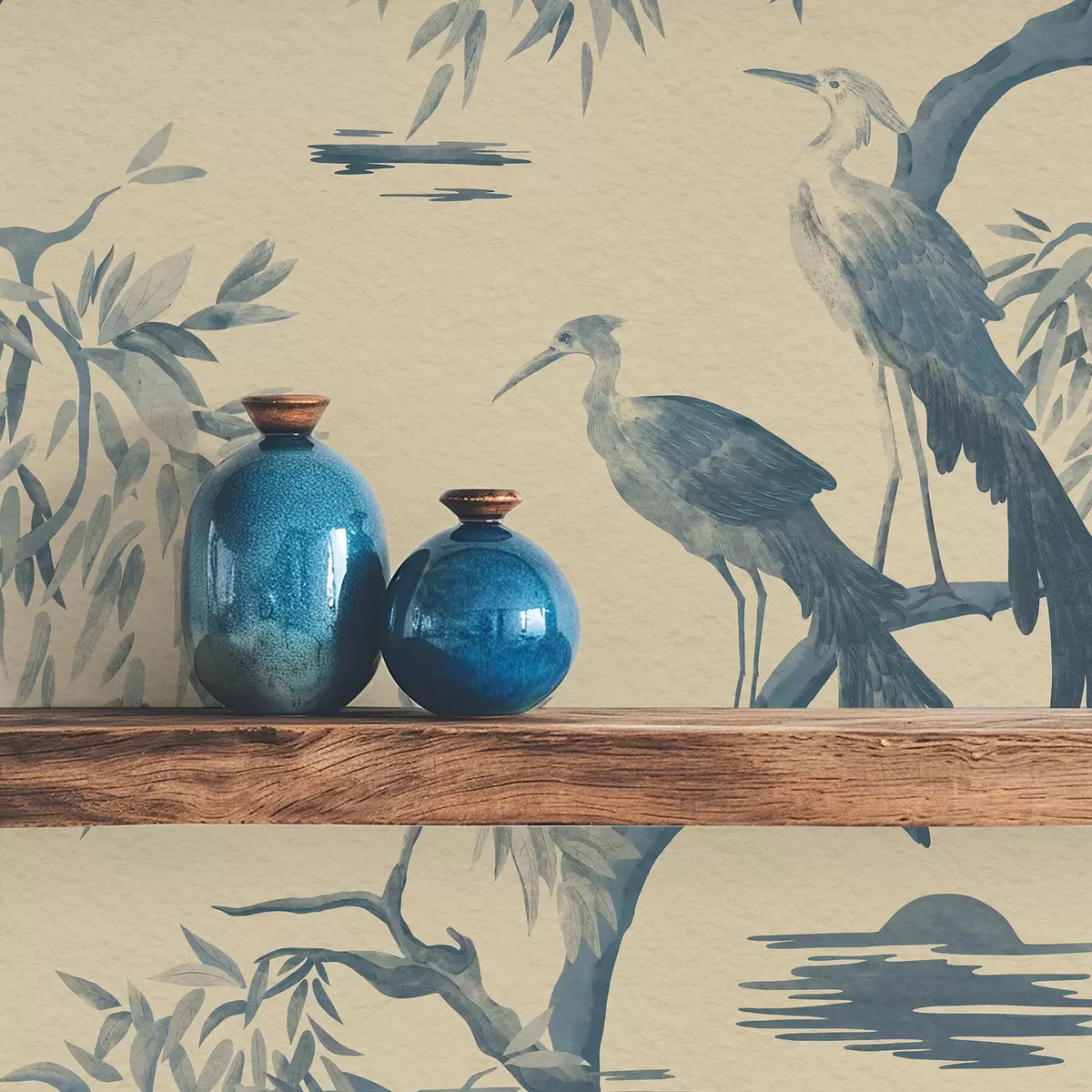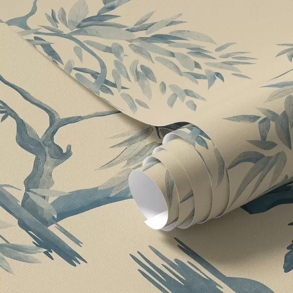 Tapet Păsări pe o ramură în tonuri de albastru Nr. a01116
