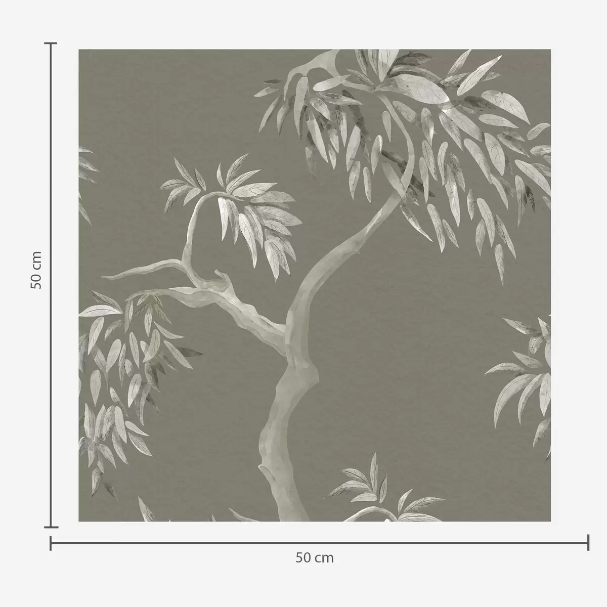 Tapet Ramură ușoară cu frunze pe fundal măslin Nr. a01117v1