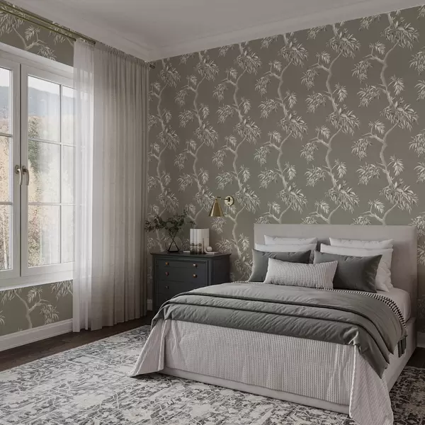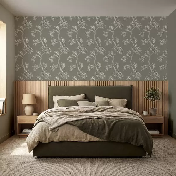 Wallpaper Ramură ușoară cu frunze pe fundal măslin a01117v1