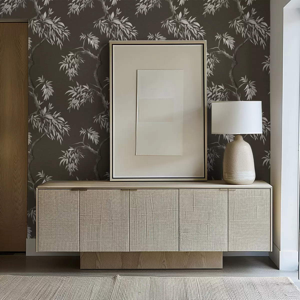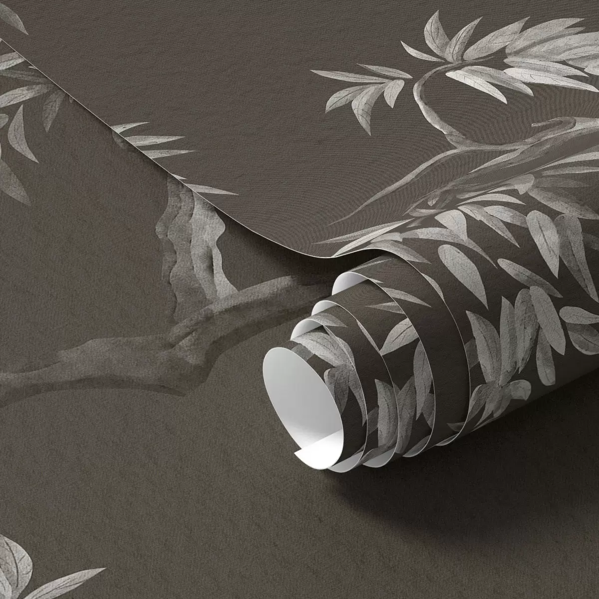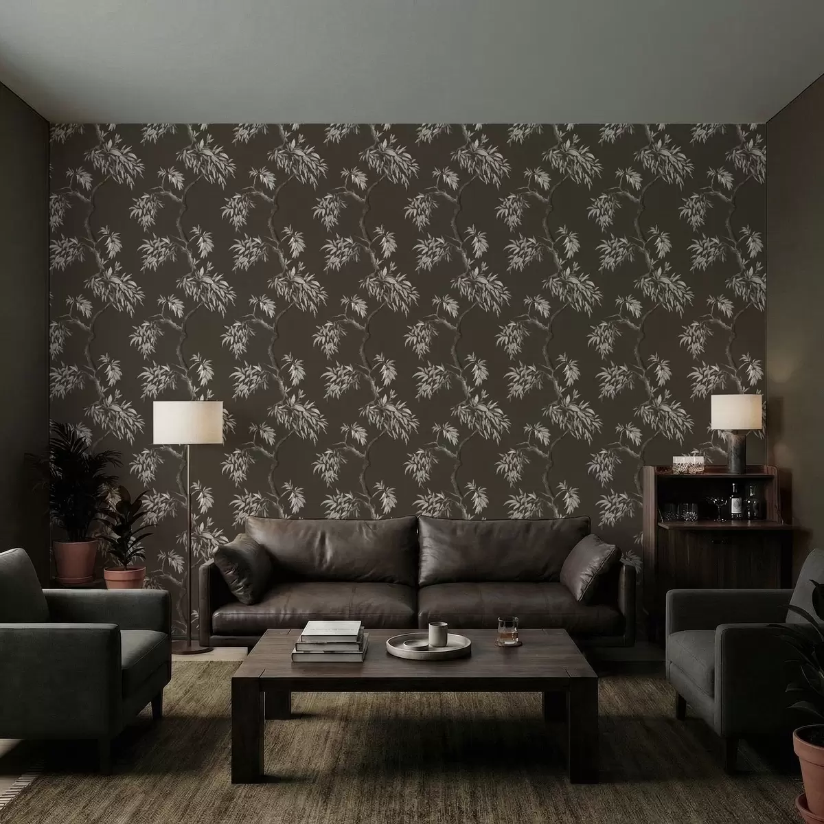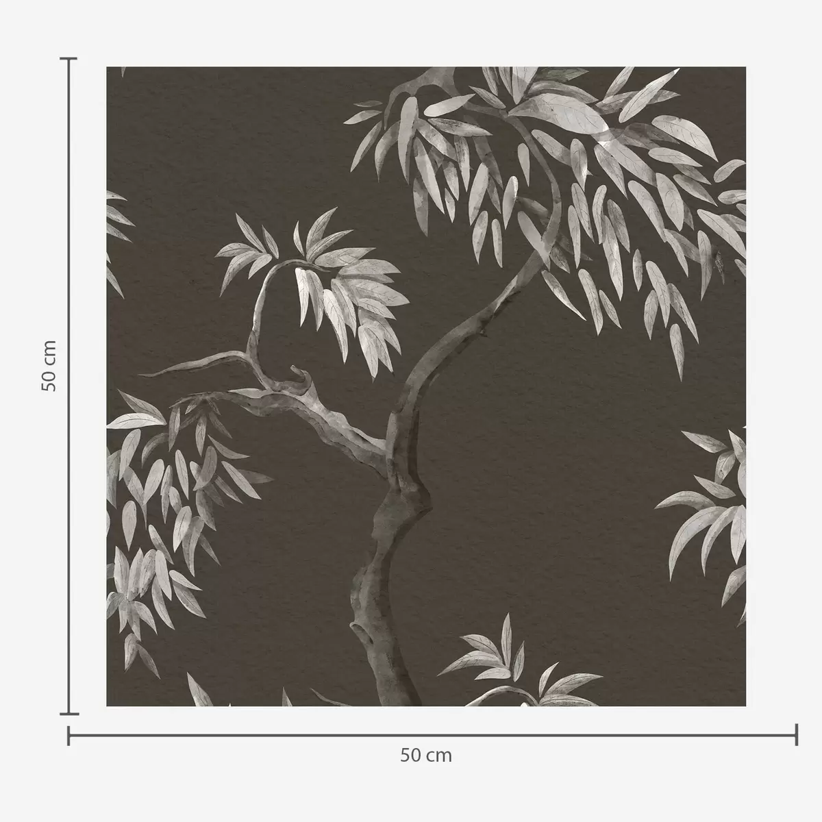 Tapet Ramură monocromă cu frunze pe fundal întunecat Nr. a01117v2