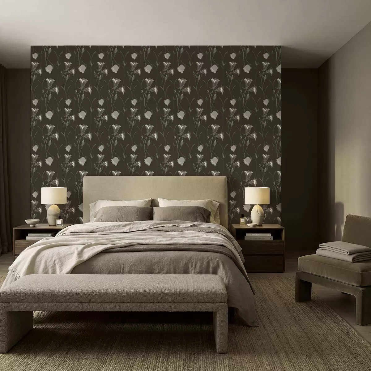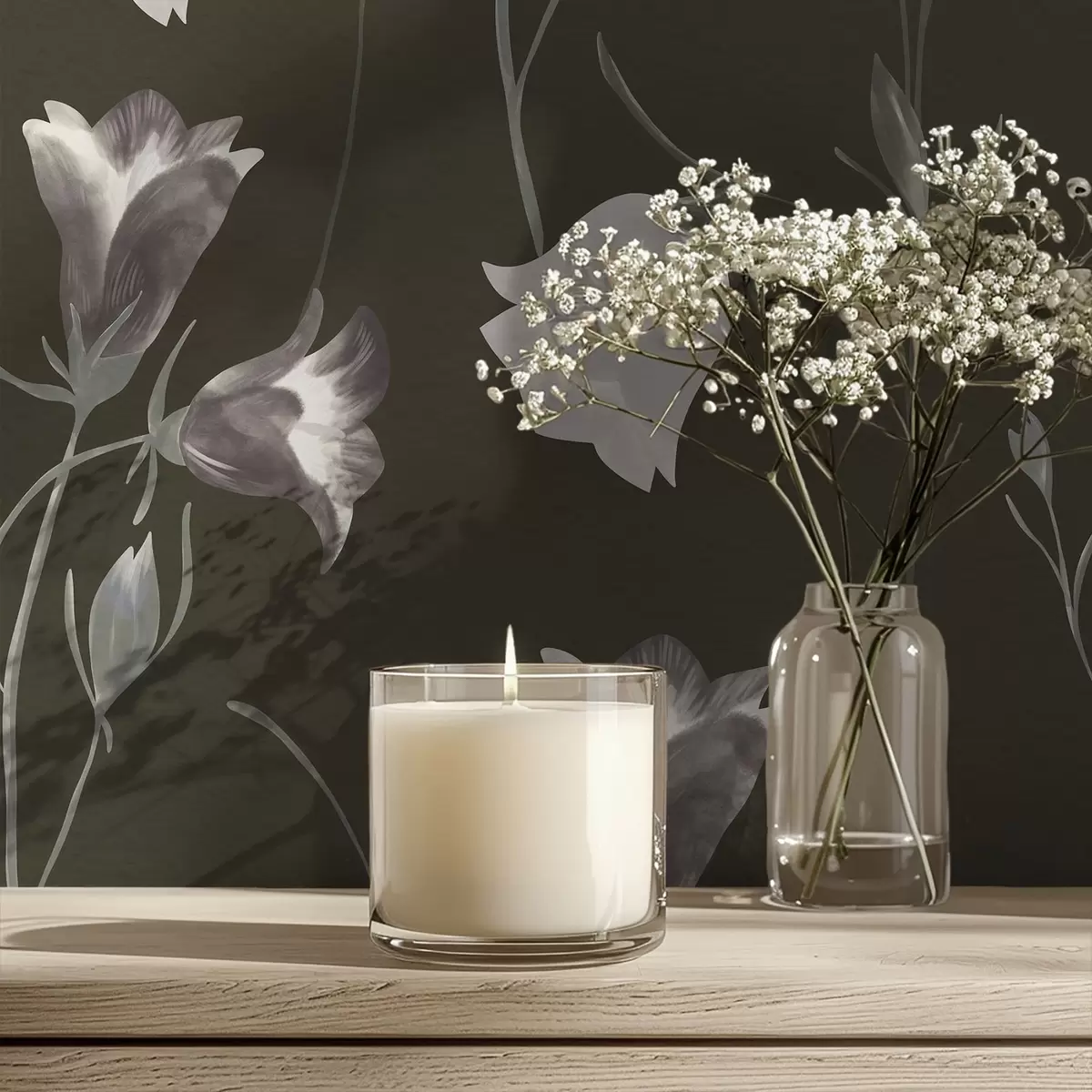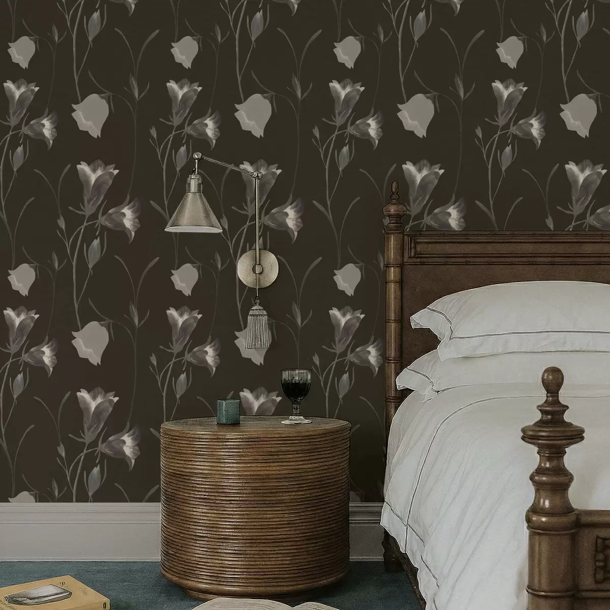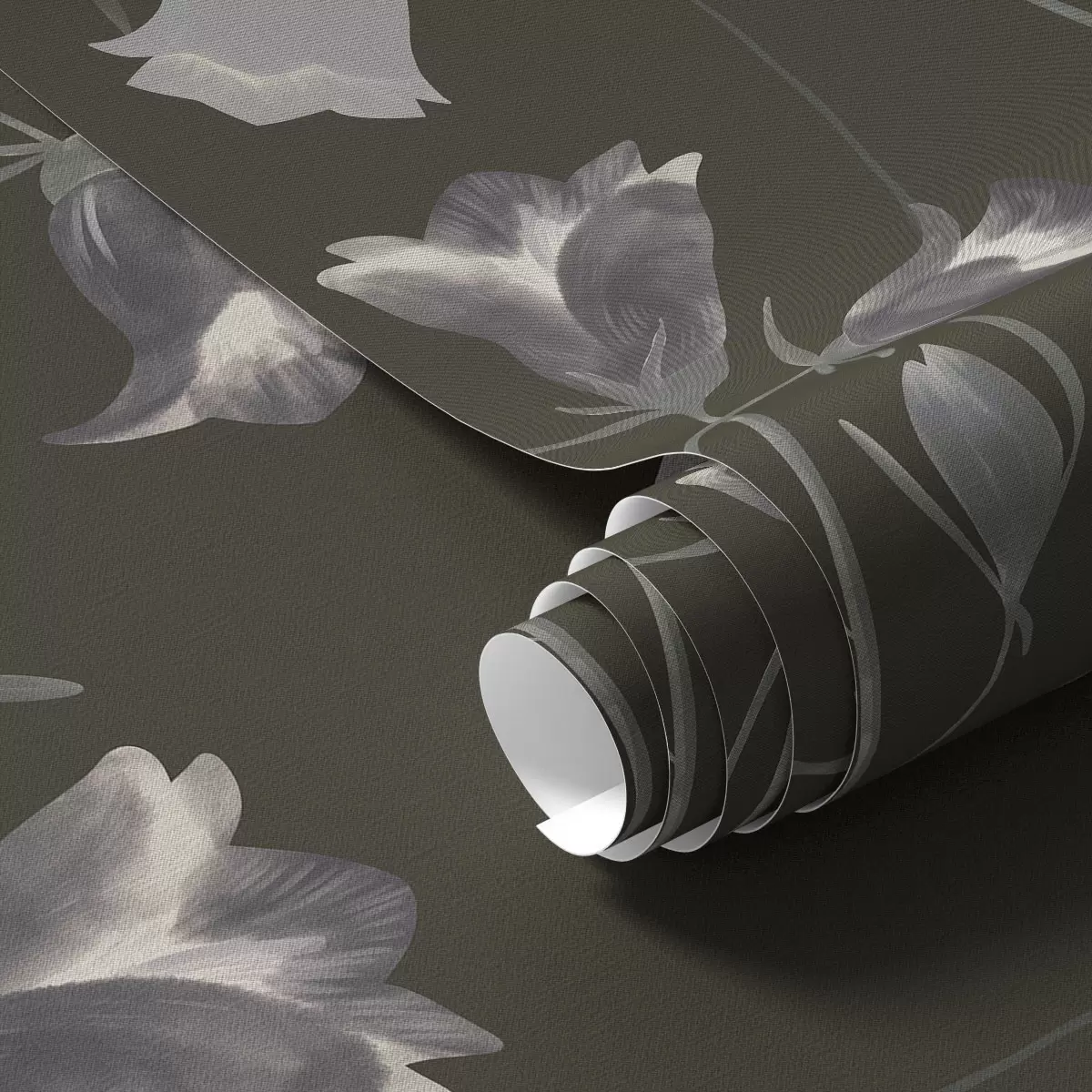 Tapet Flori gri în formă de clopoțel pe fundal întunecat Nr. a01119v1