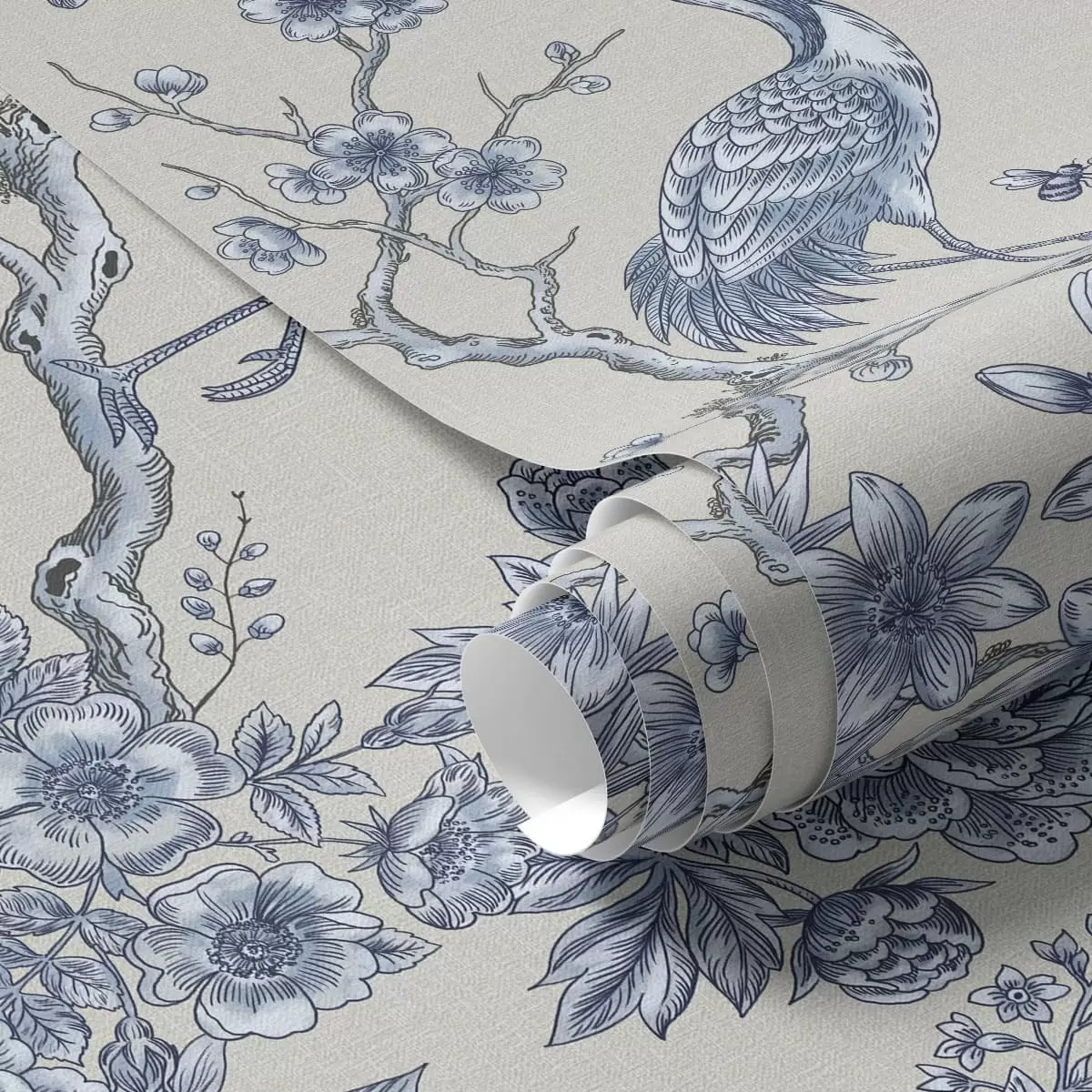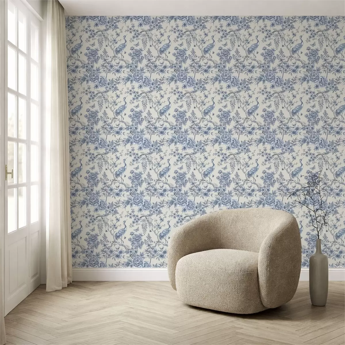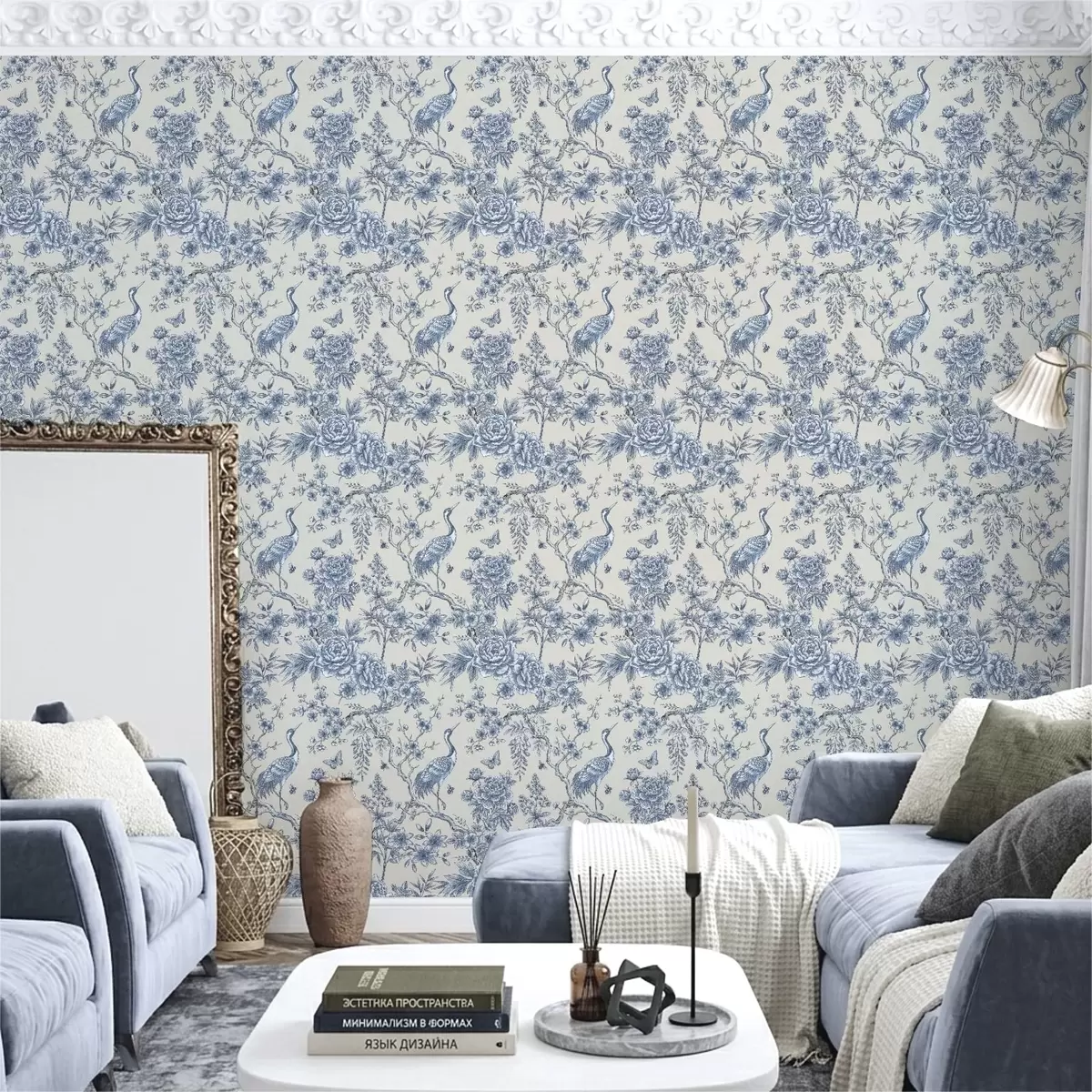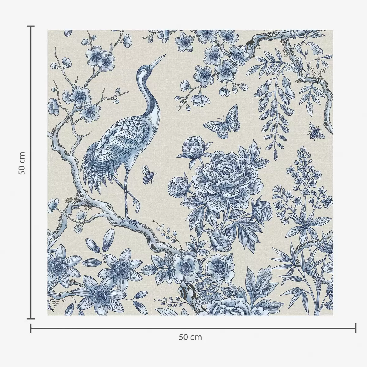 Tapet Ornament floral albastru cu pasăre și ramuri Nr. a01132