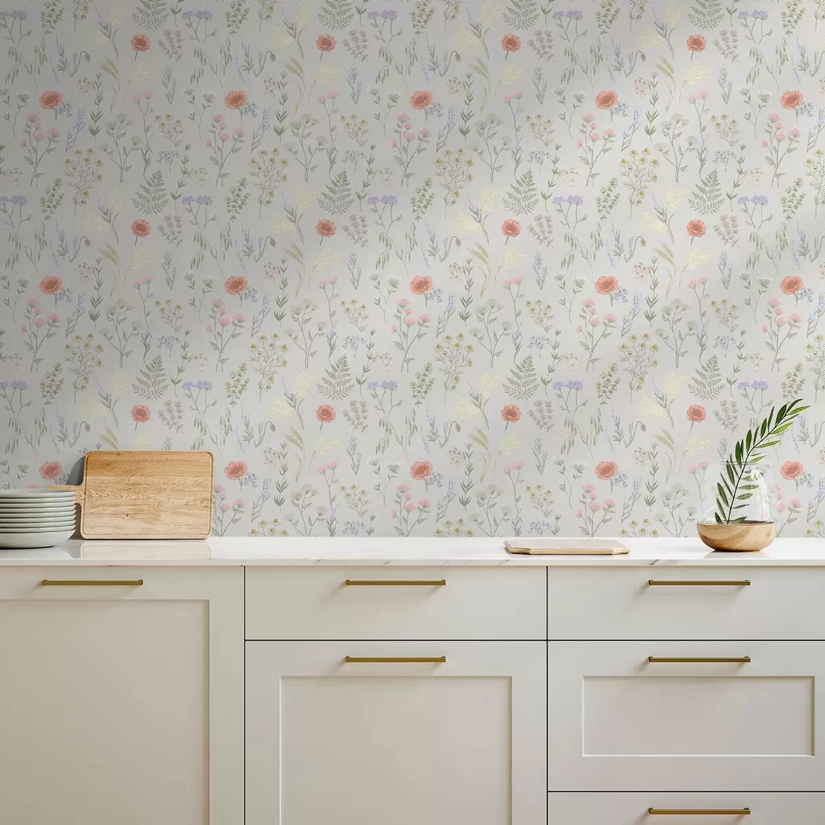 Tapet Model delicat cu flori de câmp pe un fundal deschis Nr. a01152