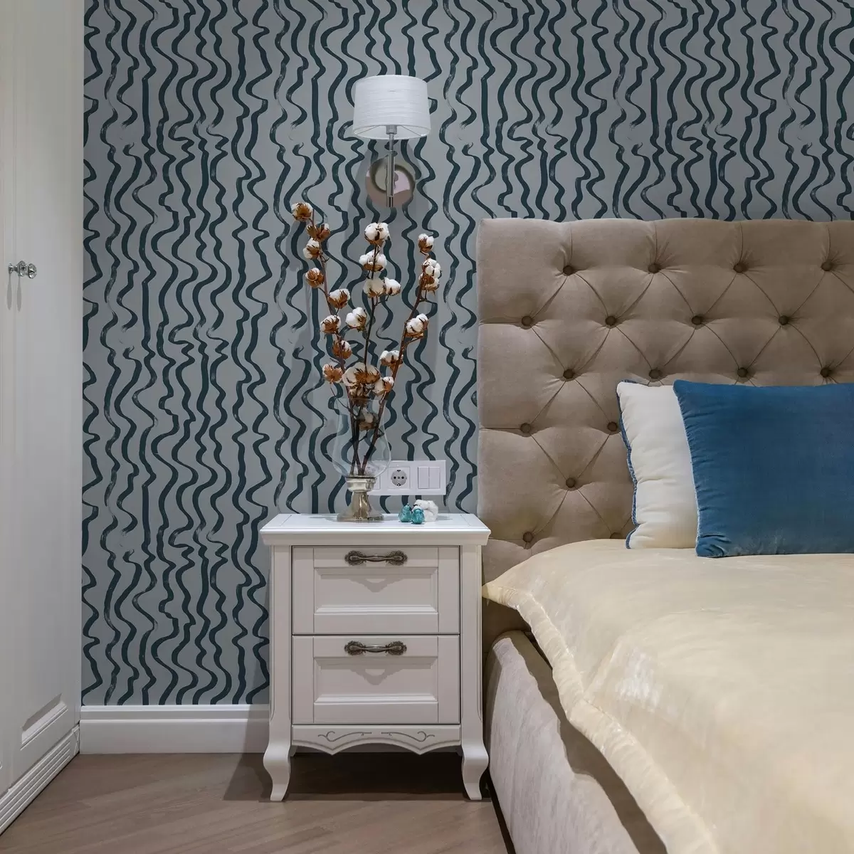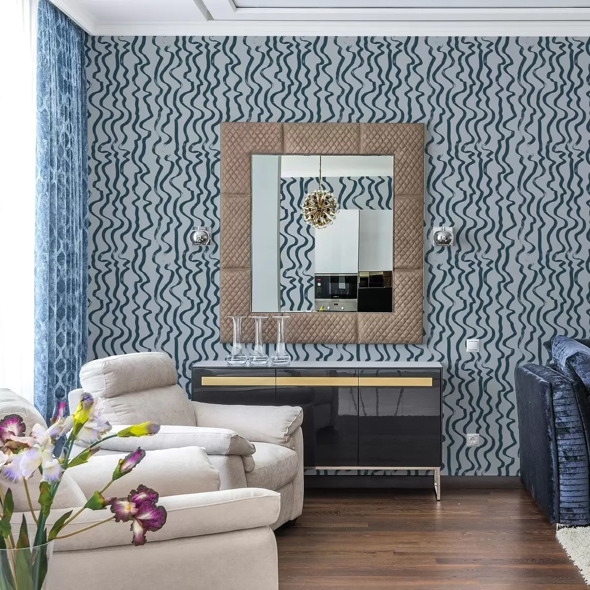 Tapet Linii ondulate de culoare închisă pe fond albastru Nr. a01168v1